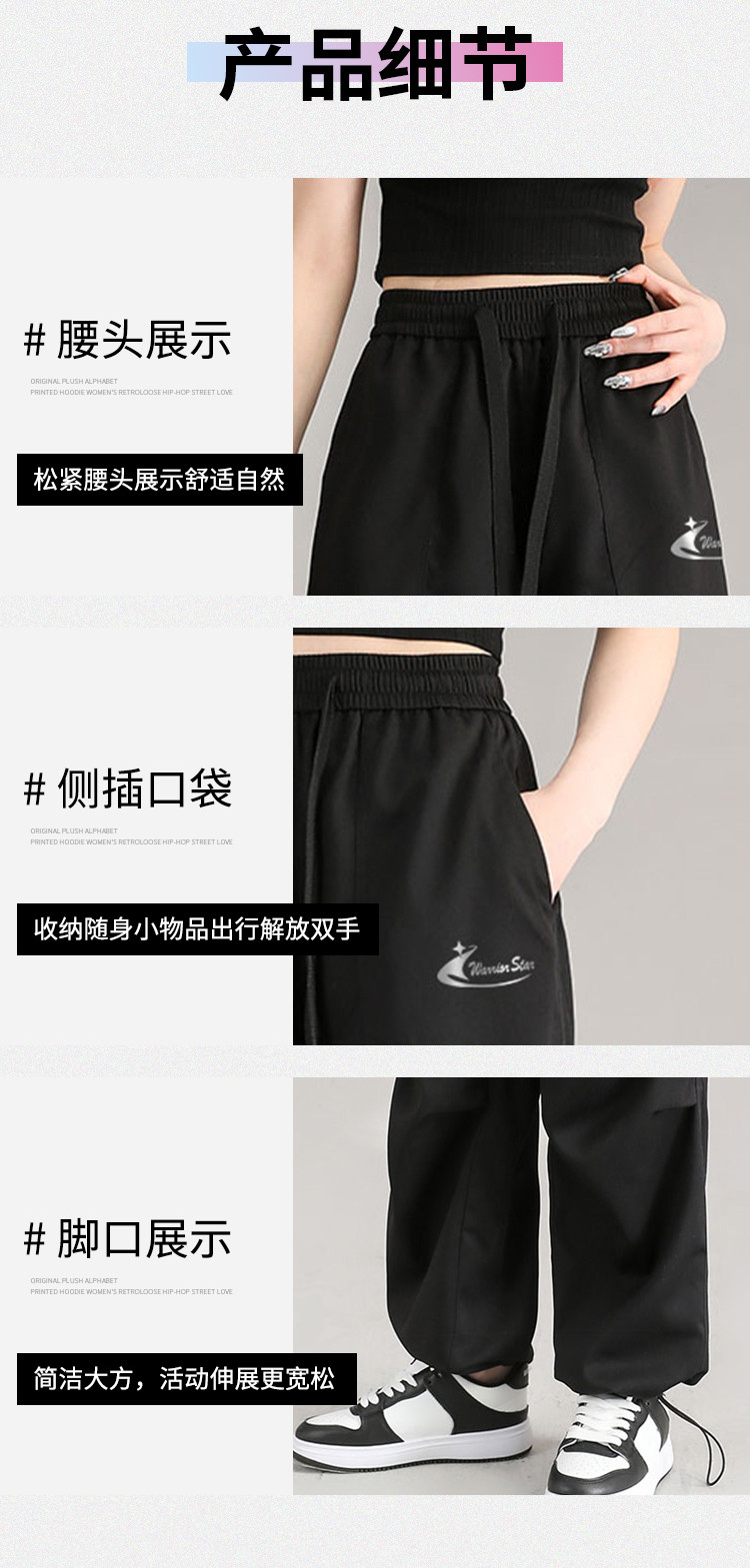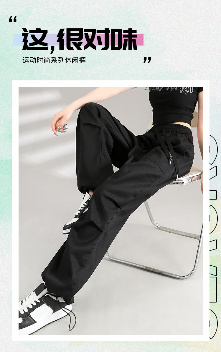 商品名称:【直筒束脚两穿】女式工装裤宽松显瘦显高运动裤女长裤美式休闲裤 096147