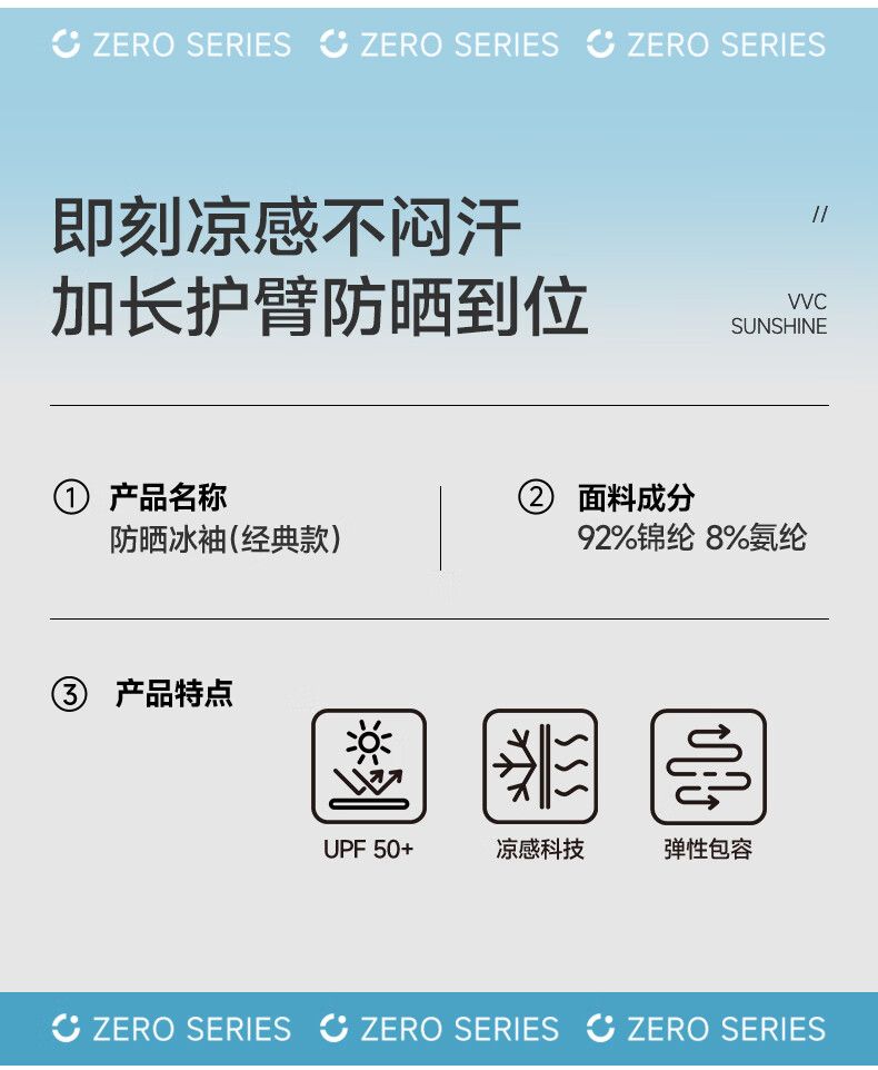 商品名称:VVC专业防晒冰袖成人经典款