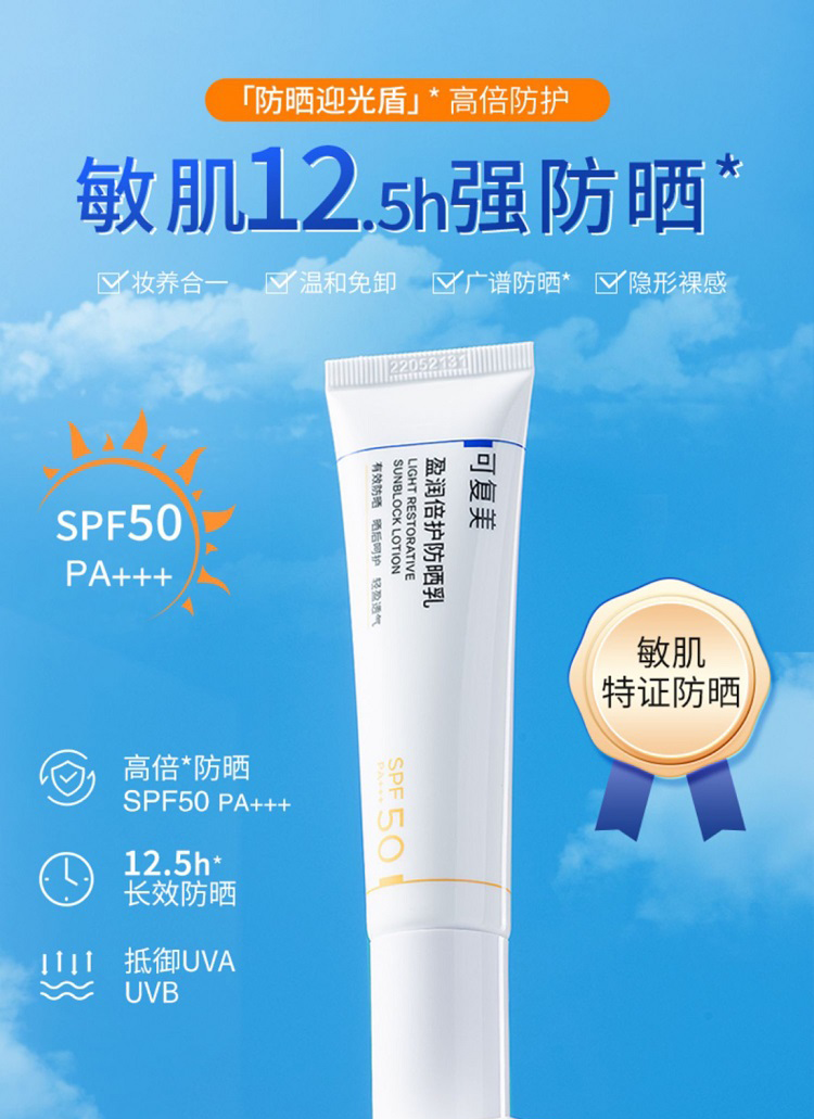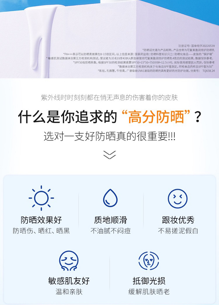 商品名称:可复美 盈润倍护隔离紫外线清爽spf50清爽防晒乳 40g