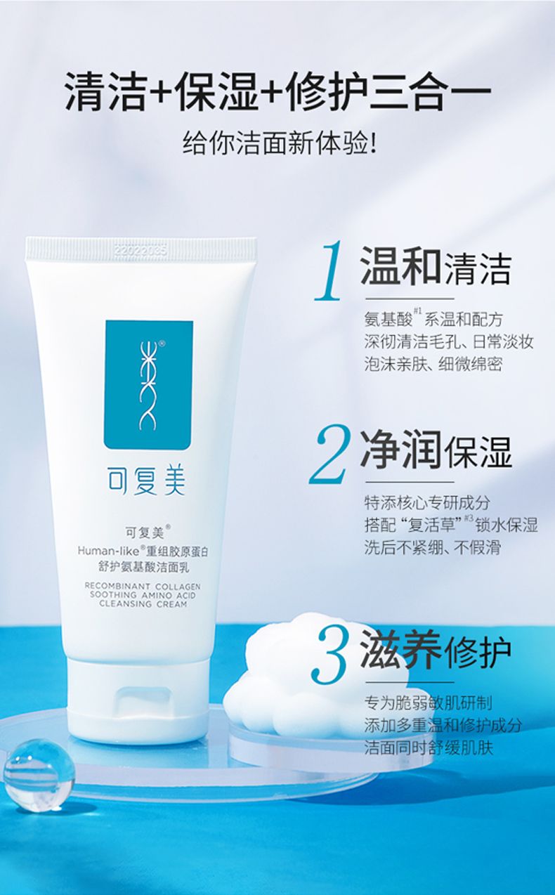 商品名称:可复美 Human-like重组胶原蛋白舒护氨基酸洁面乳