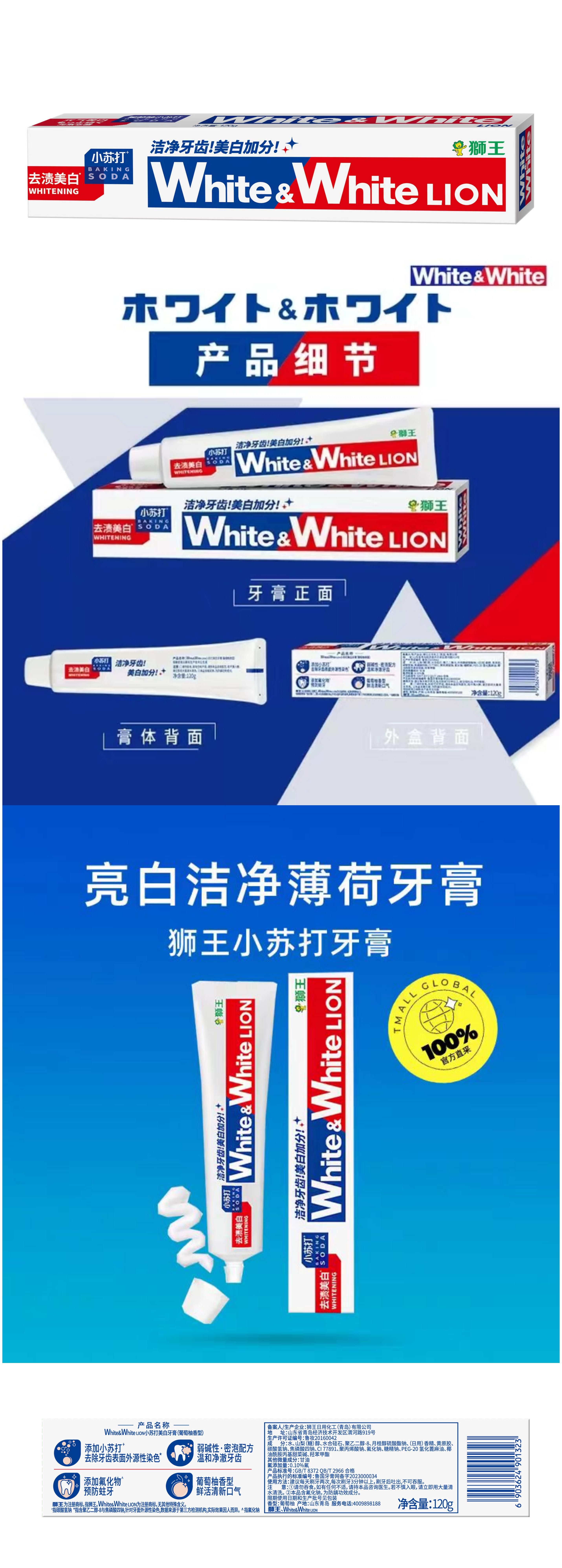 商品名称:狮王White&White LION小苏打美白牙膏(葡萄柚香型)120g三支 P41000-3
