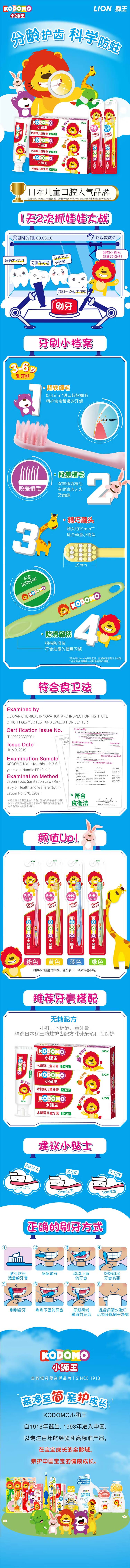 商品名称:小狮王儿童细毛牙刷(3-6岁) 1支装颜色随机 B04024