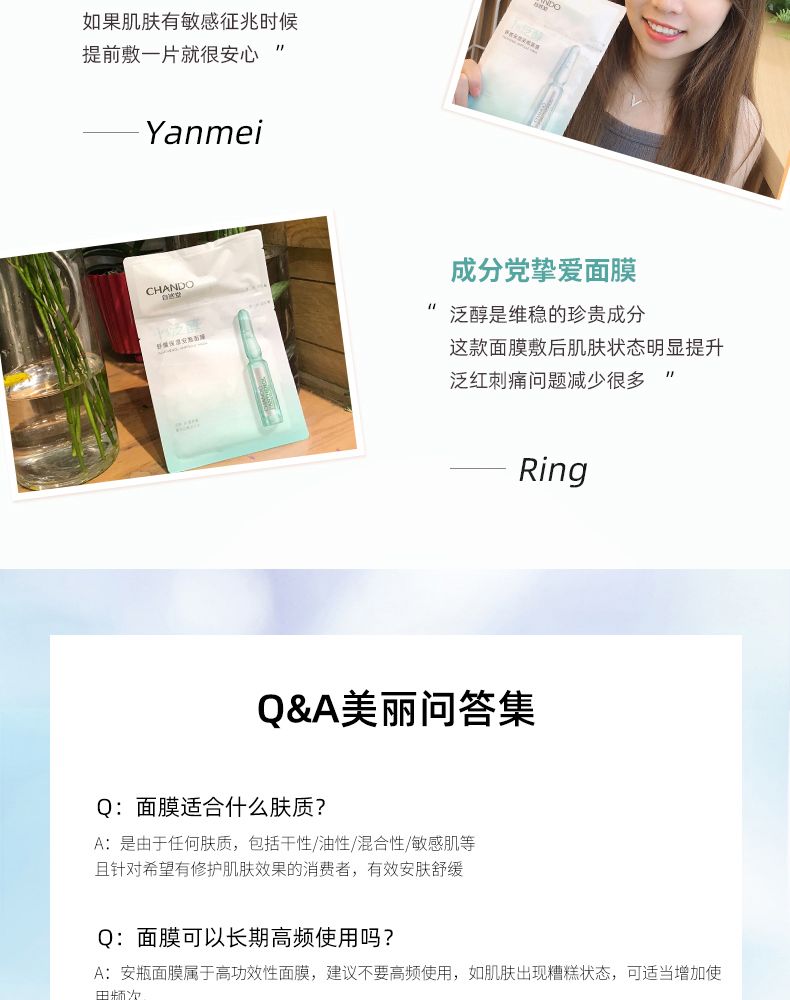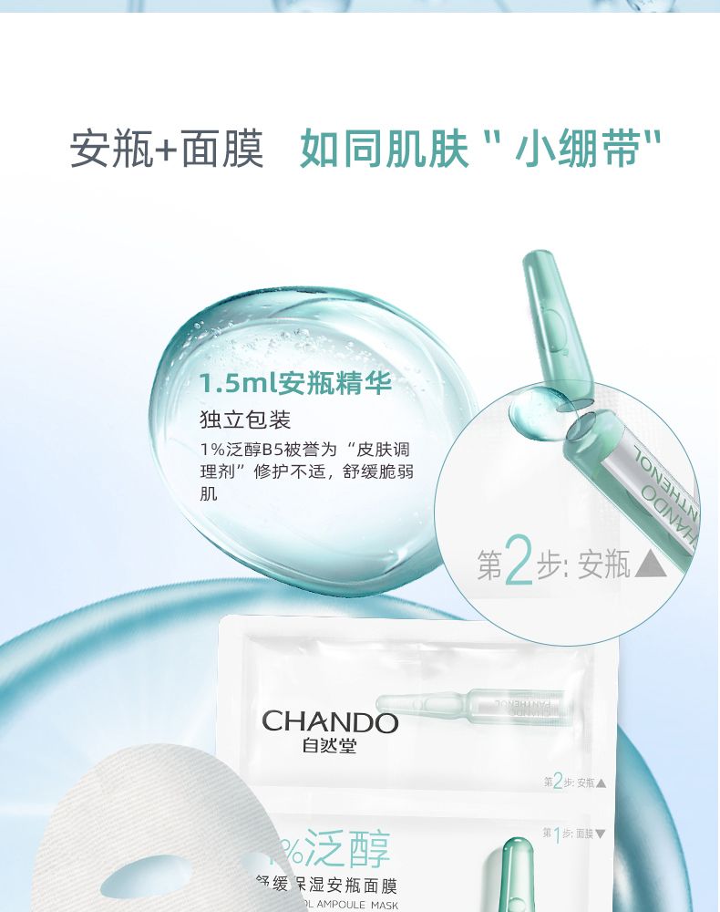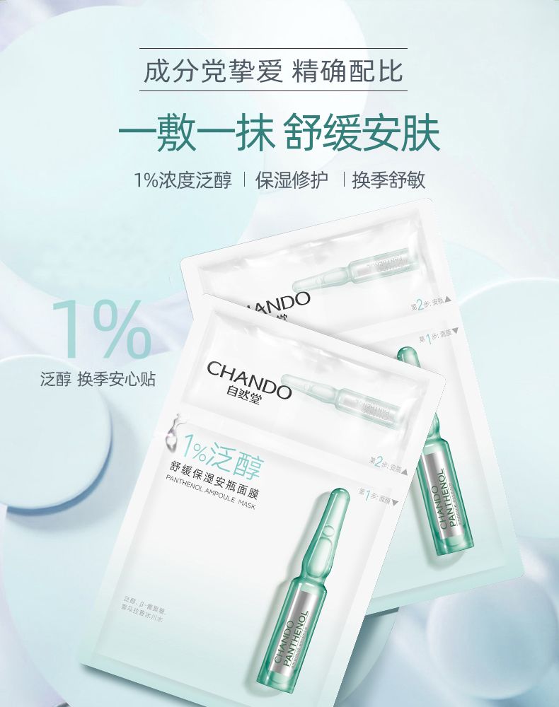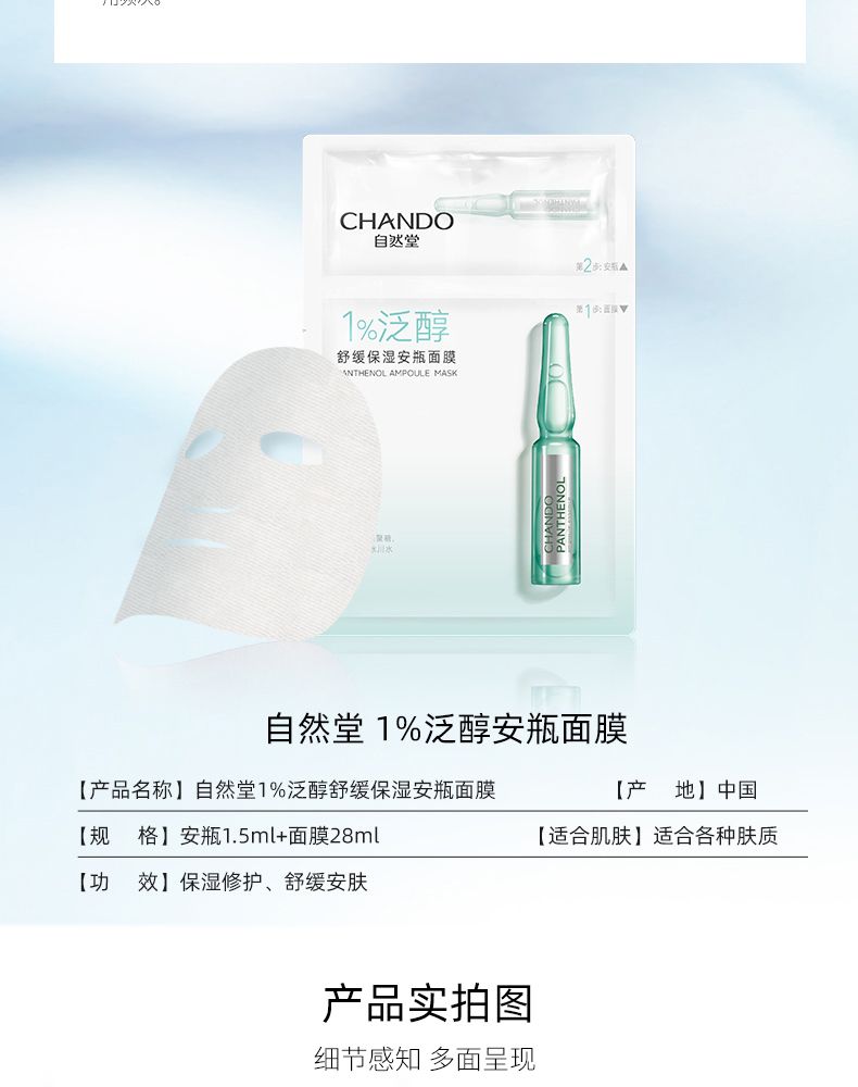 商品名称:自然堂 泛醇舒缓保湿安瓶面膜 安瓶1.5mL+面膜28mL 5片装