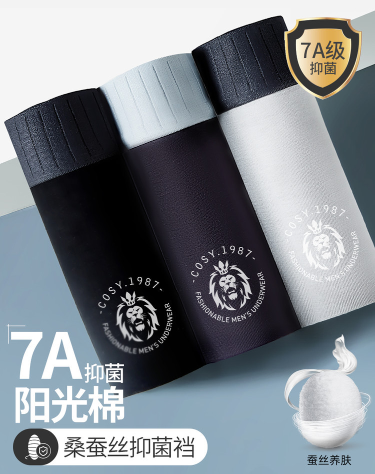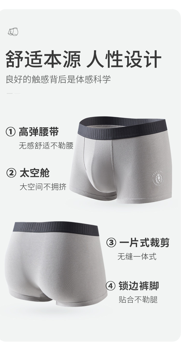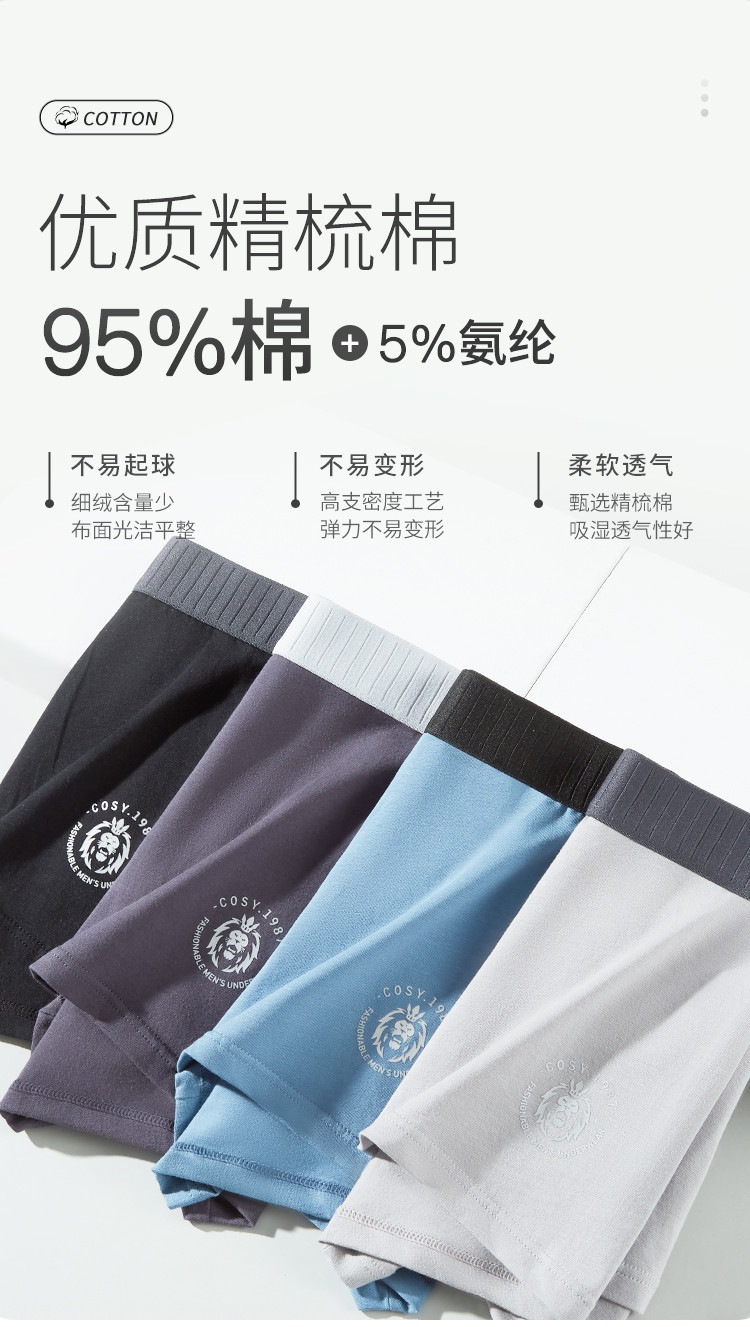 3件7A抑菌【3D王牌甄选】男士内裤95%棉平角内裤男士内裤 054539
