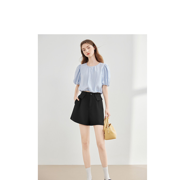 【2024夏季】简约阔腿休闲短裤女高腰显瘦宽松垂坠感西装 170004