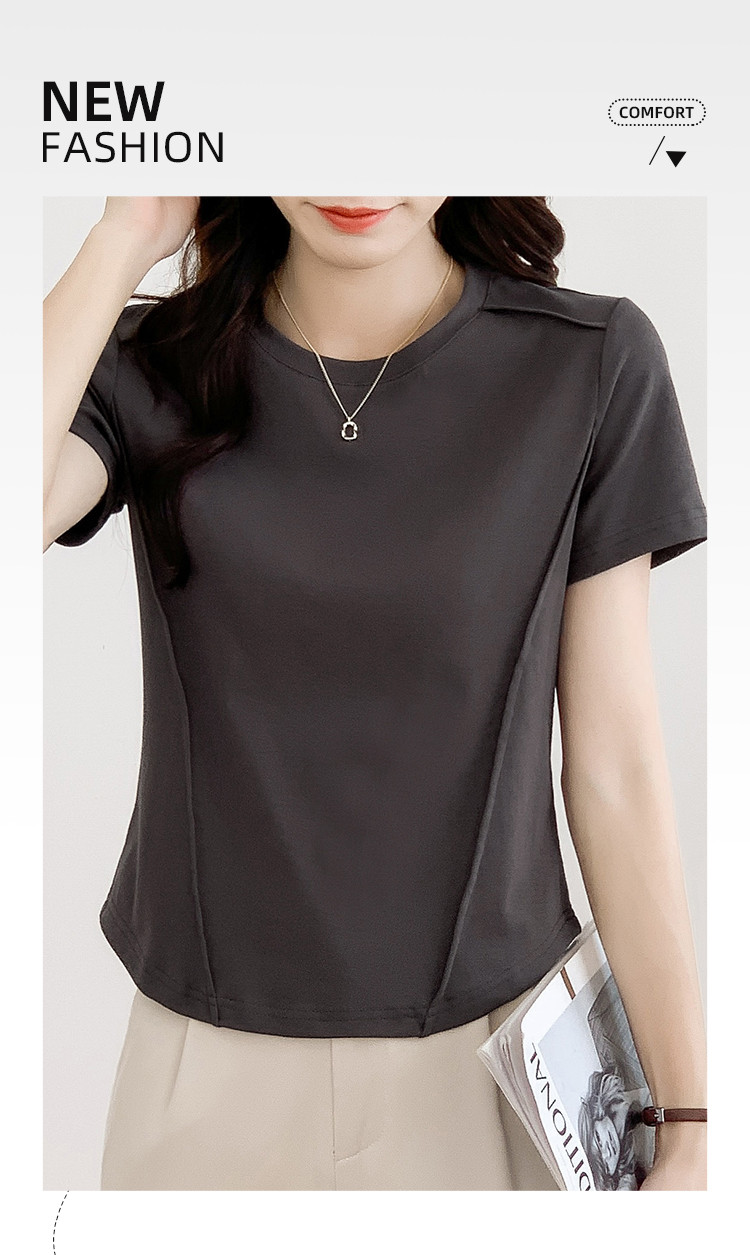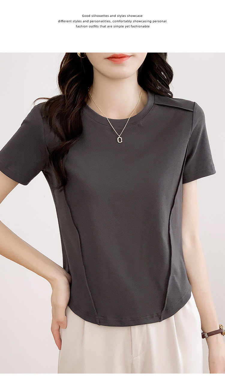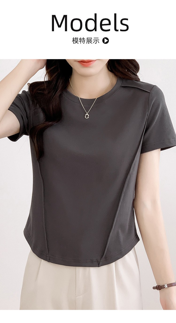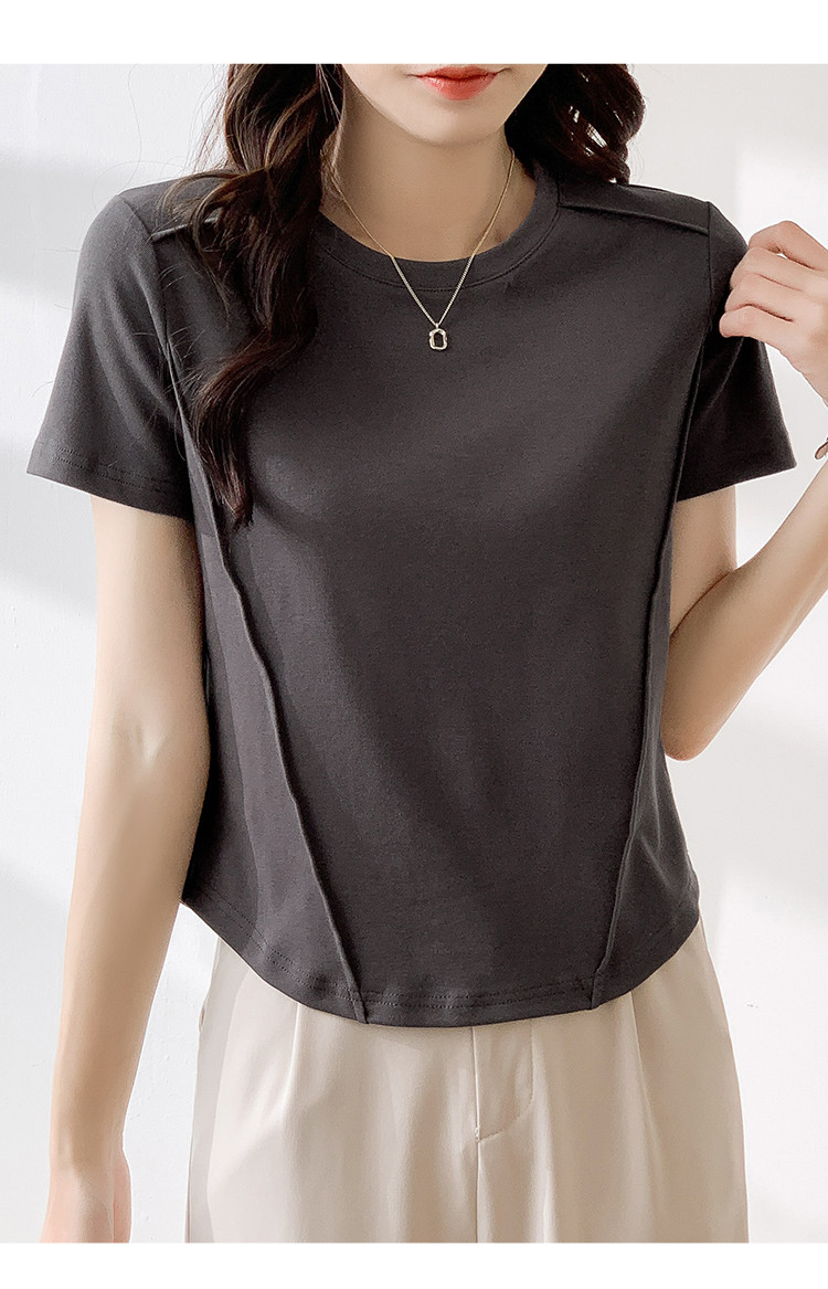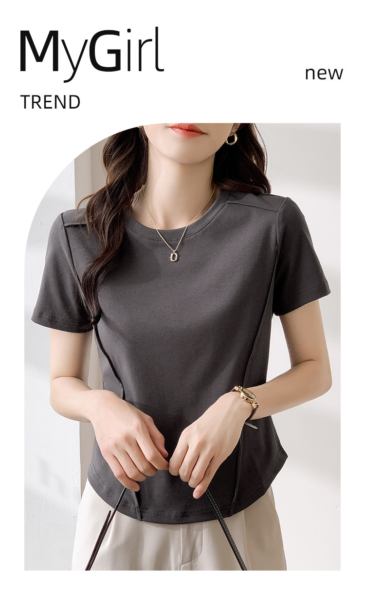 商品名称:【夏季】短款圆领纯色休闲T恤简约女套头短袖上衣 876632