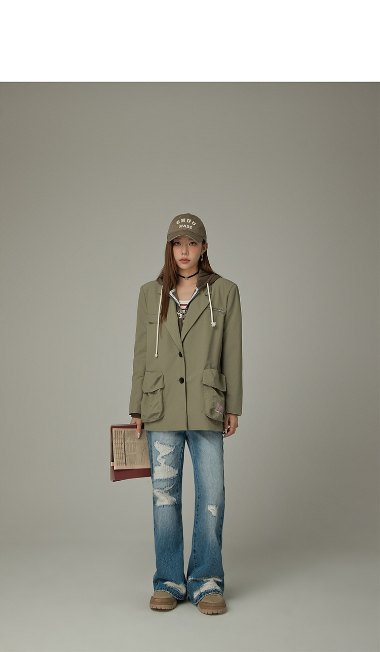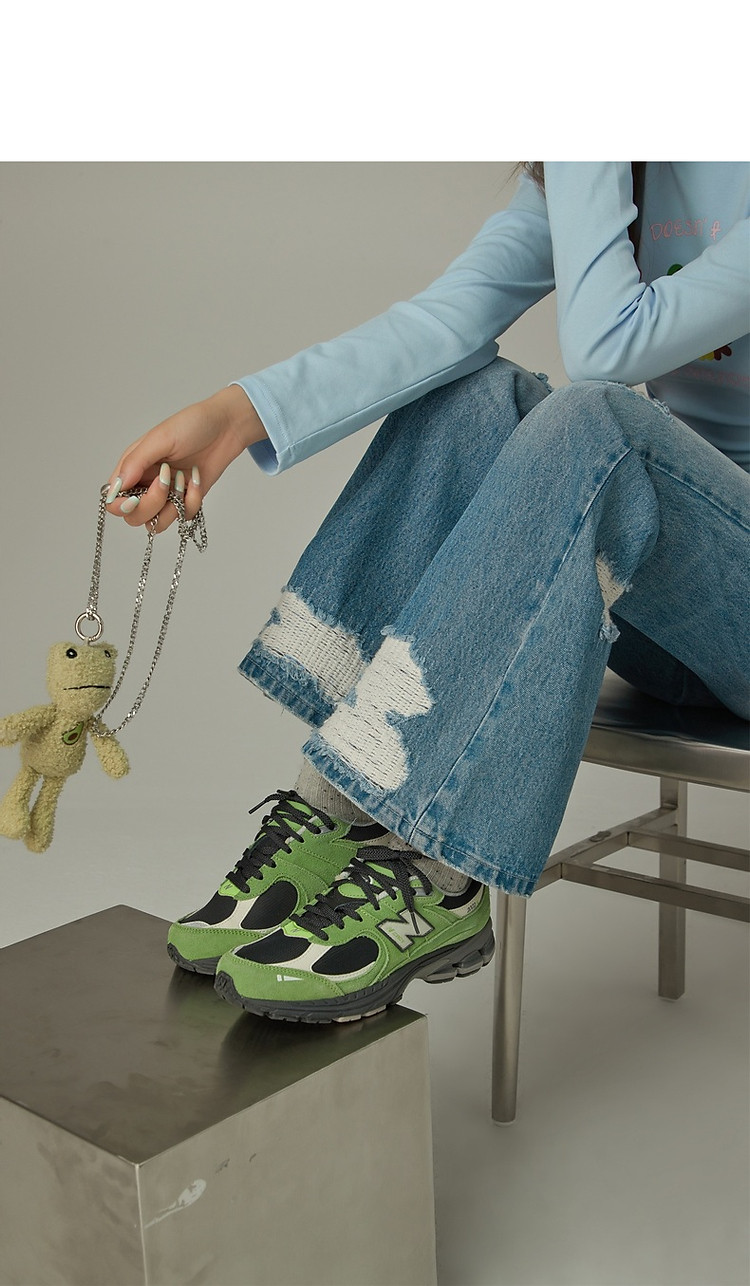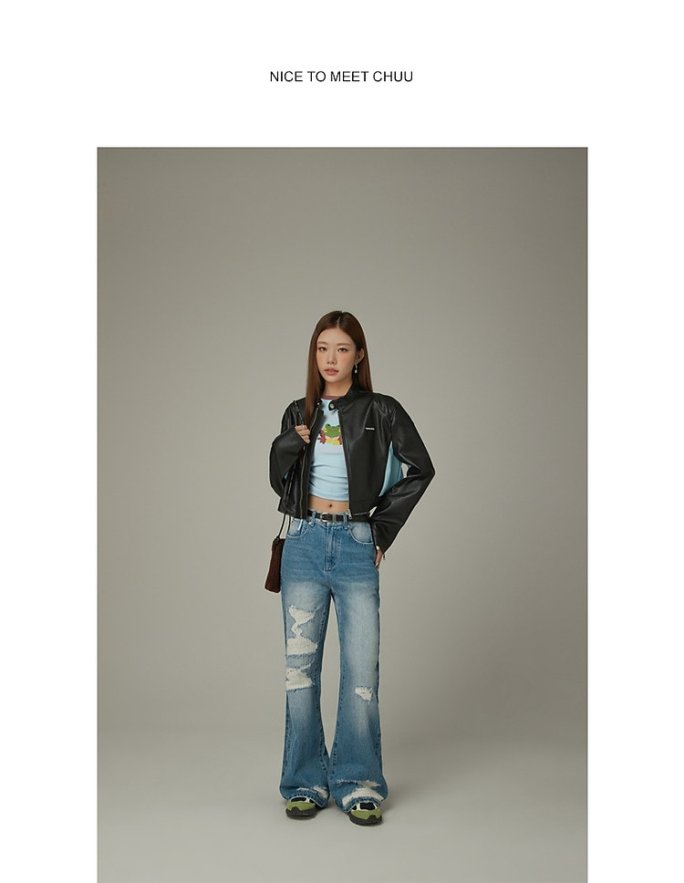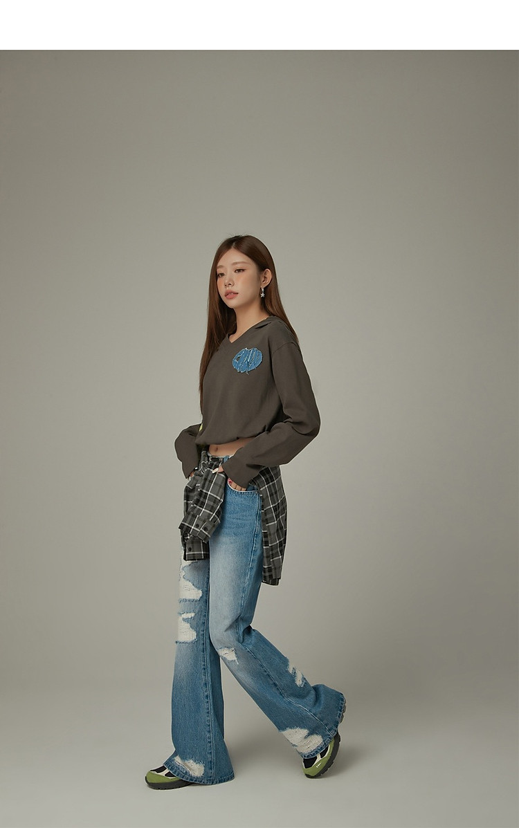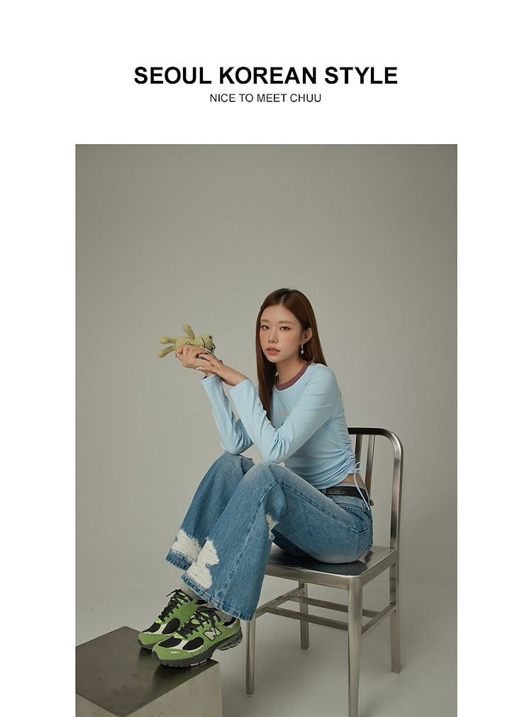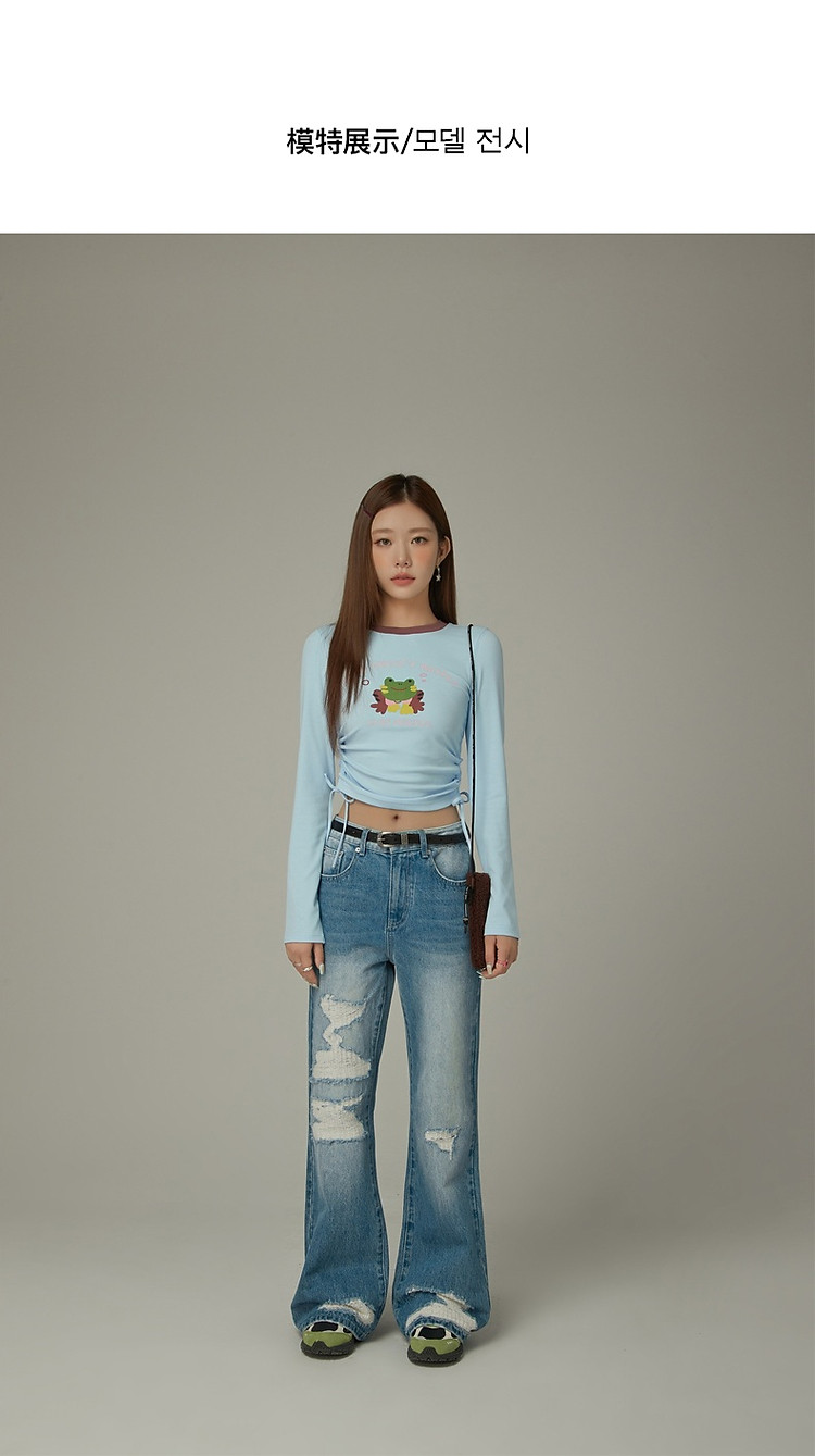 商品名称:磨破微喇牛仔裤女士春秋浅色不规则破洞修身长裤子 611155