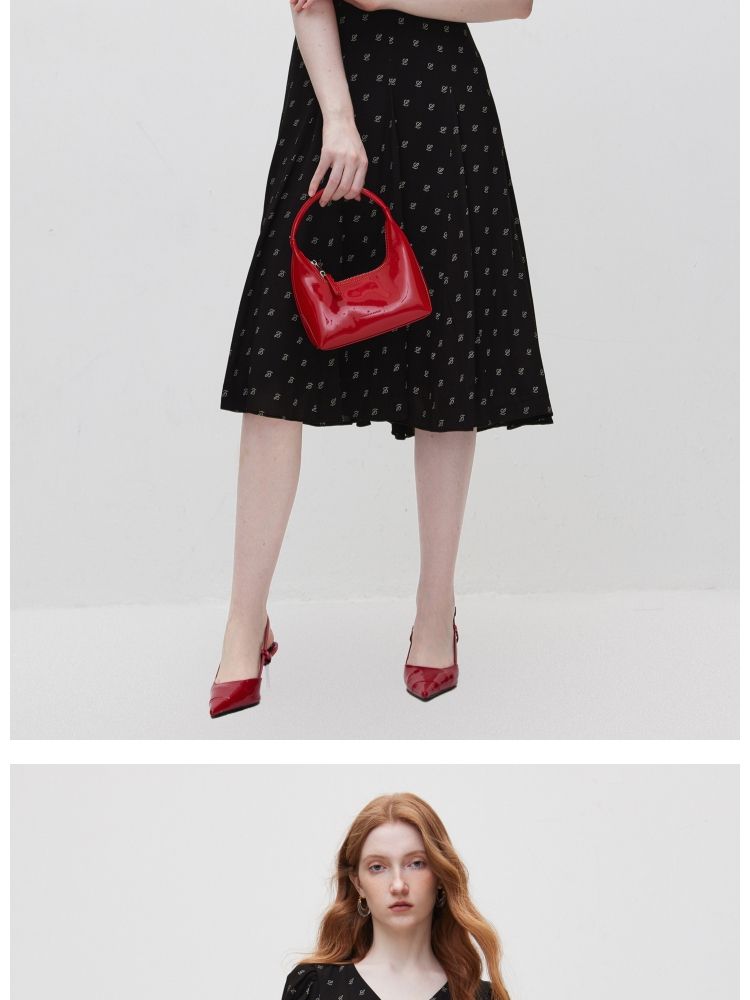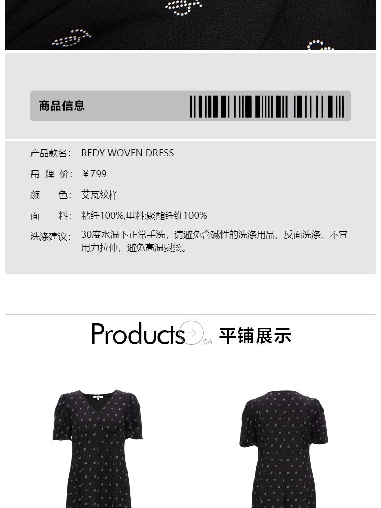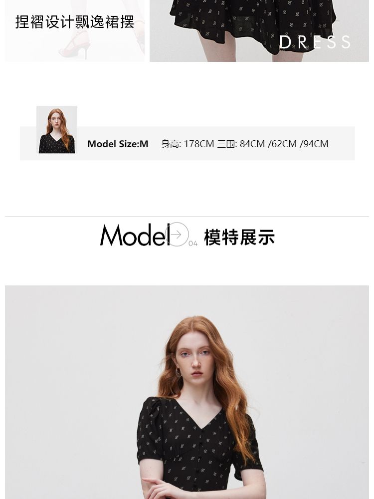 商品名称:【气质小黑裙】夏季V领泡泡袖中长裙连衣裙女 666266