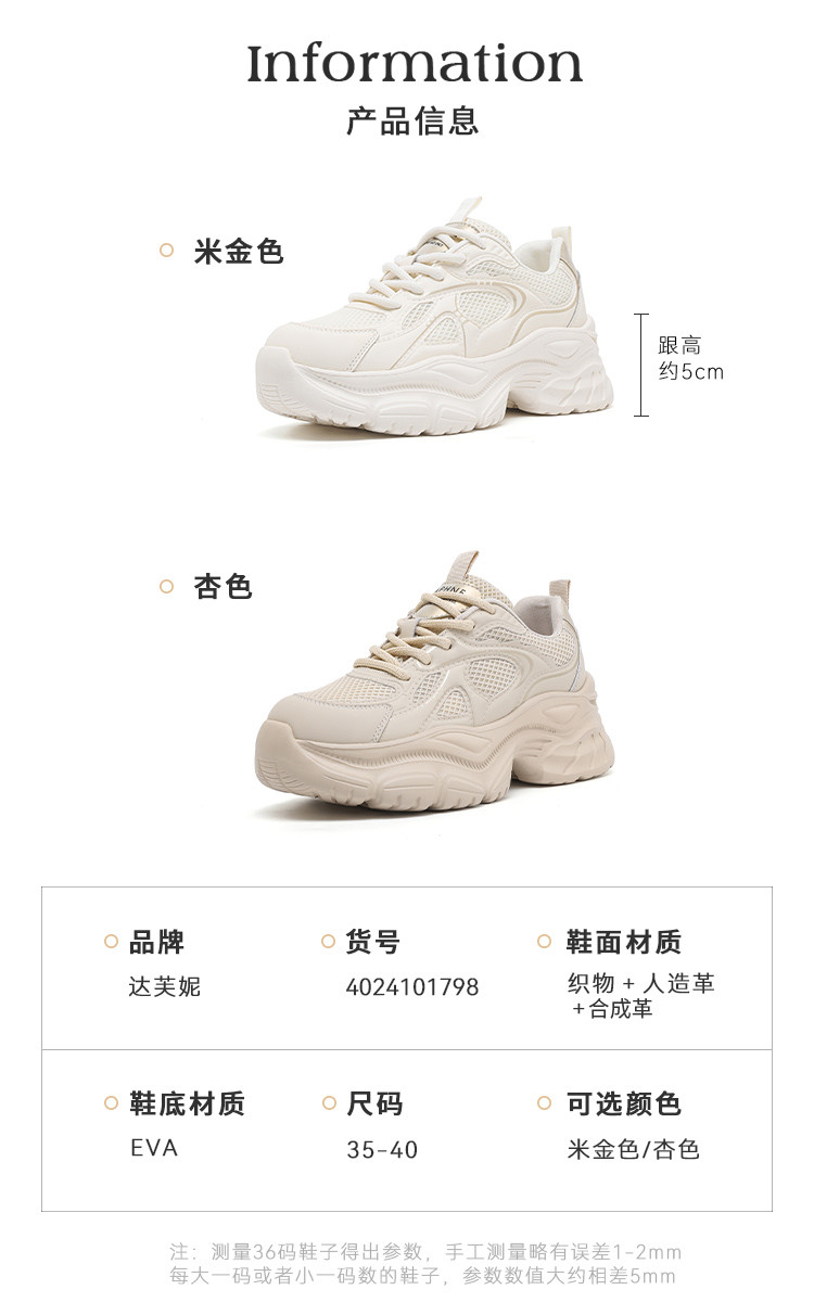 商品名称:春夏老爹鞋女舒适透气网面鞋百搭厚底鞋显脚小学生休闲鞋增高鞋 083735