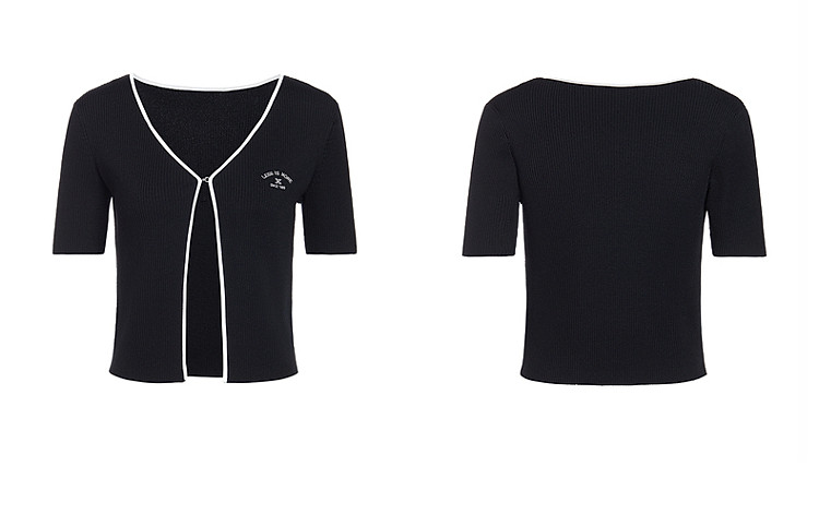 黑标系列 夏装木耳边钉珠V领短款短袖针织外套女 319375