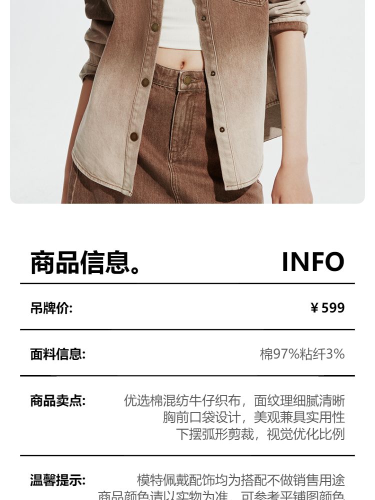 商品名称:衬衫H宽松版型水洗渐变牛仔外套宽松百搭 730385