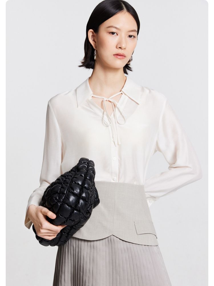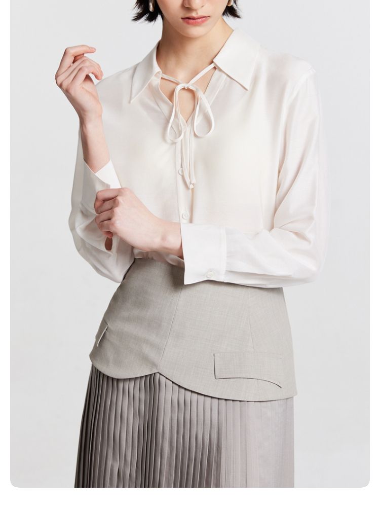 衬衫女宽松翻领微透法式优雅气质通勤 626385
