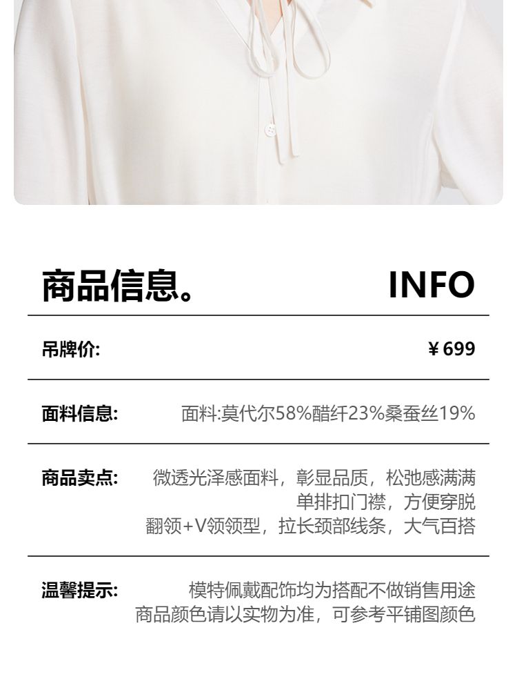 商品名称:衬衫女宽松翻领微透法式优雅气质通勤 626385