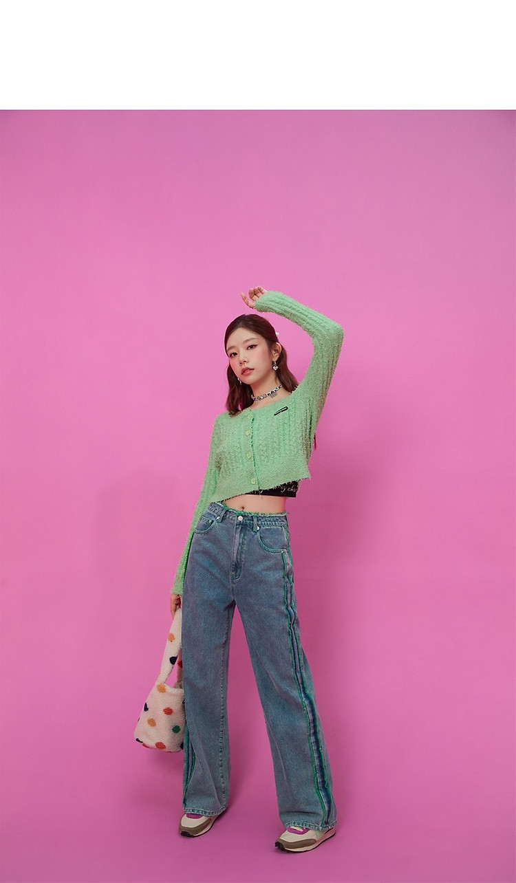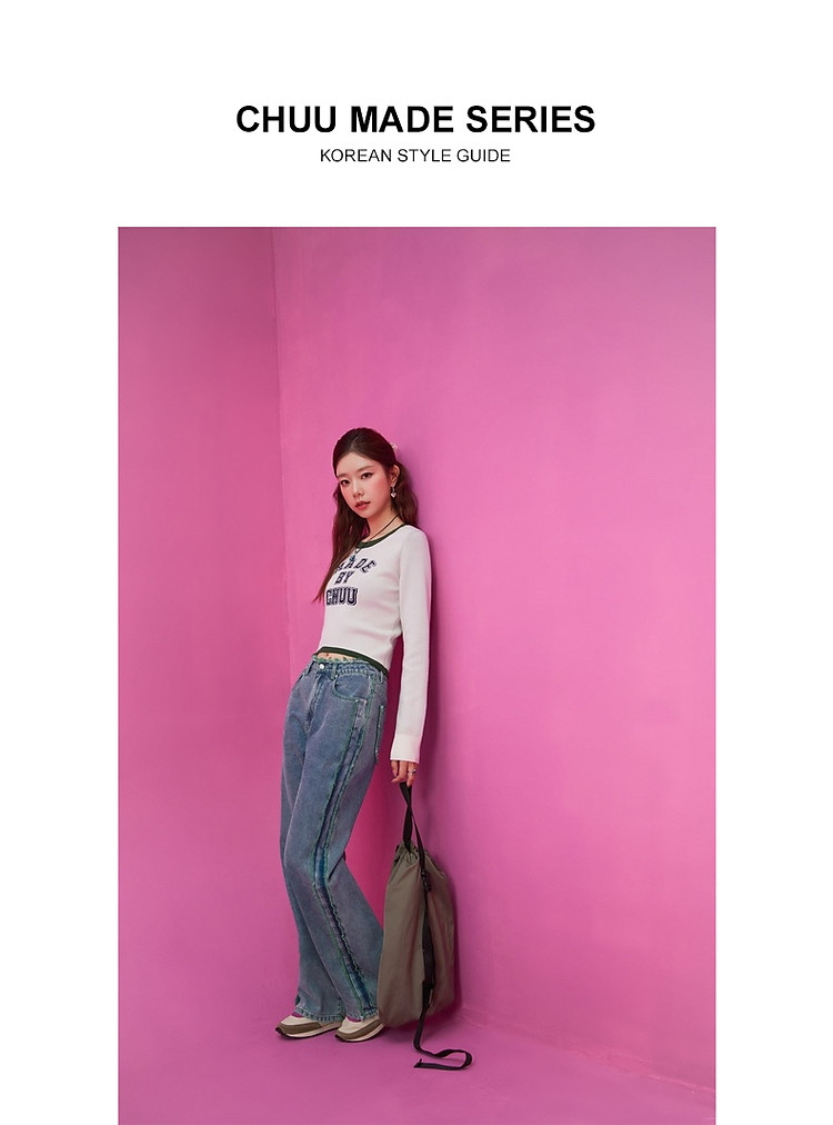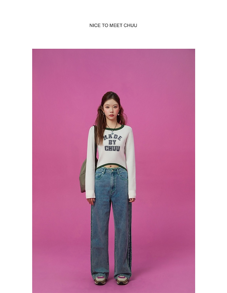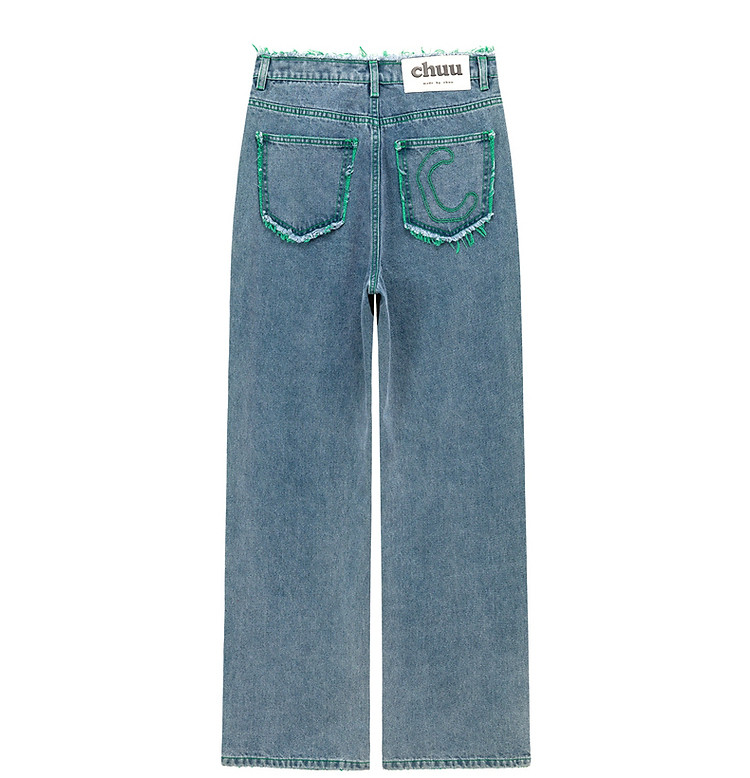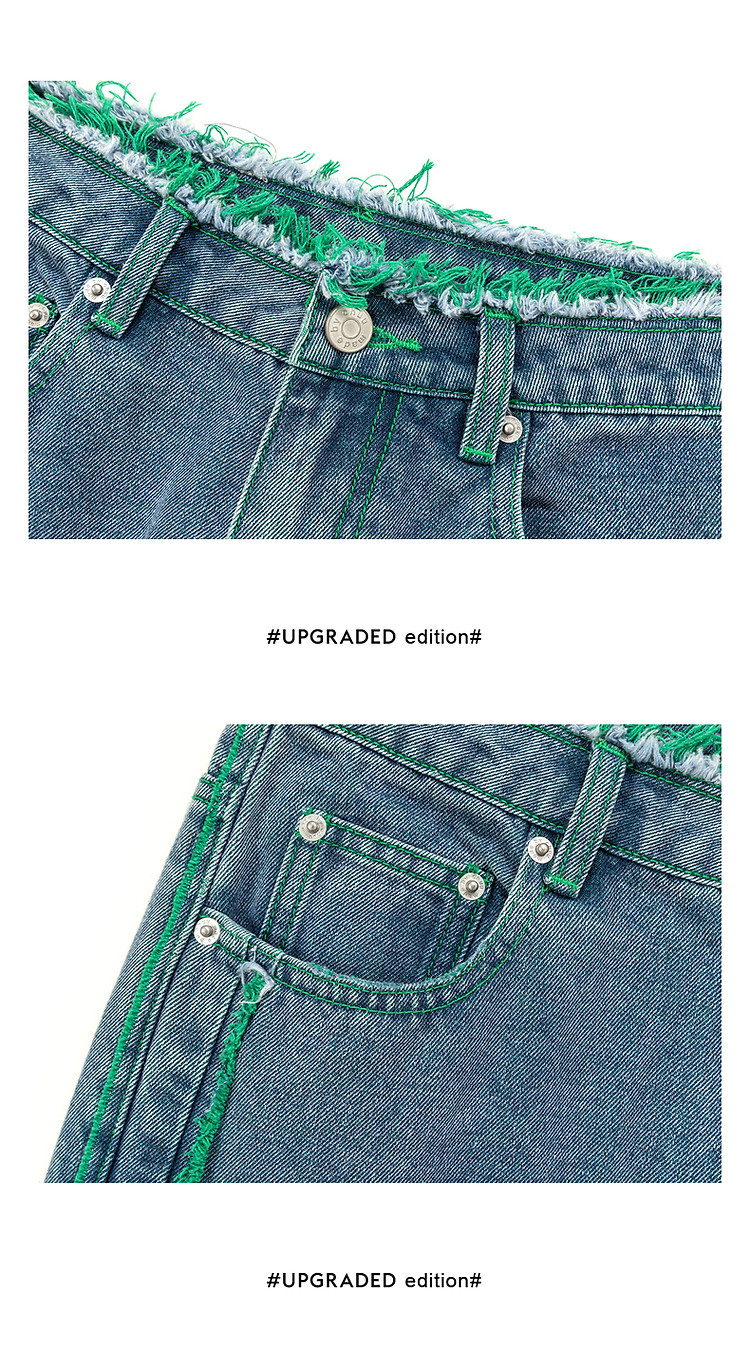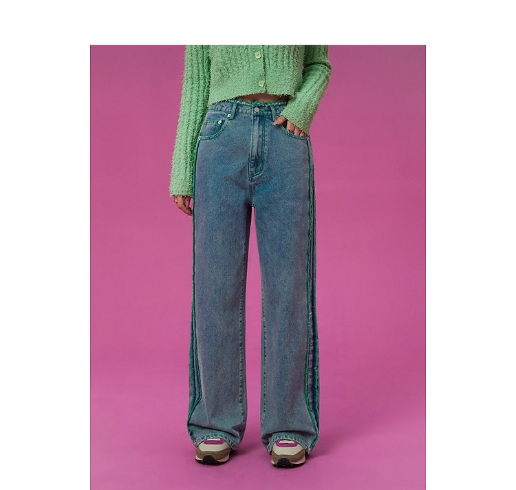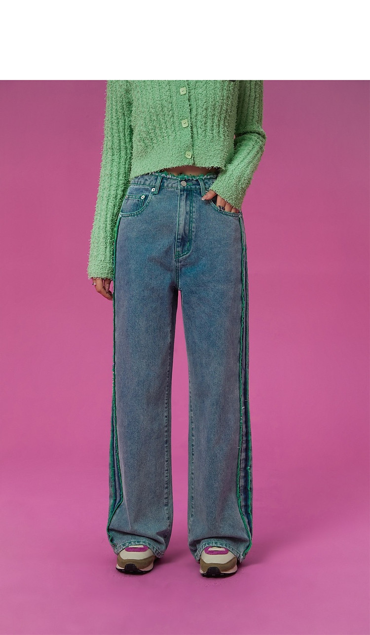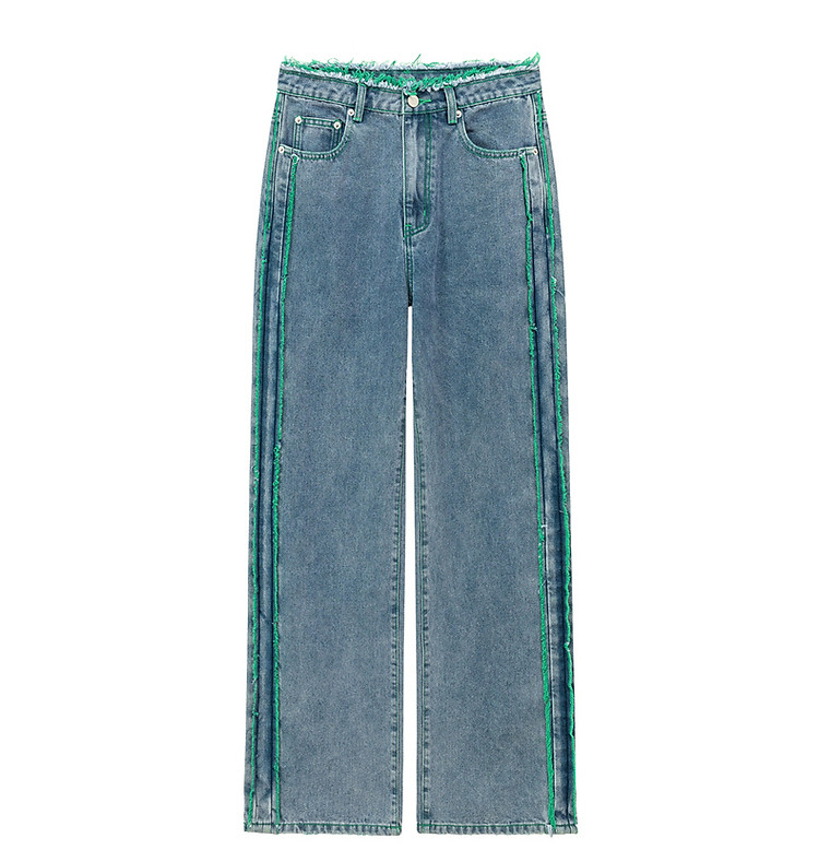 商品名称:牛仔裤女春秋撞色毛边设计感直筒阔腿长裤子 635731