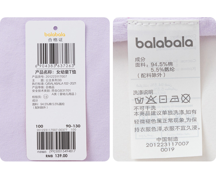 商品名称:巴拉巴拉童装儿童短袖T恤夏装小童宝宝女童 649413