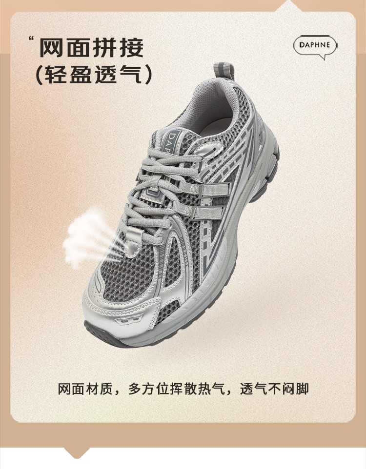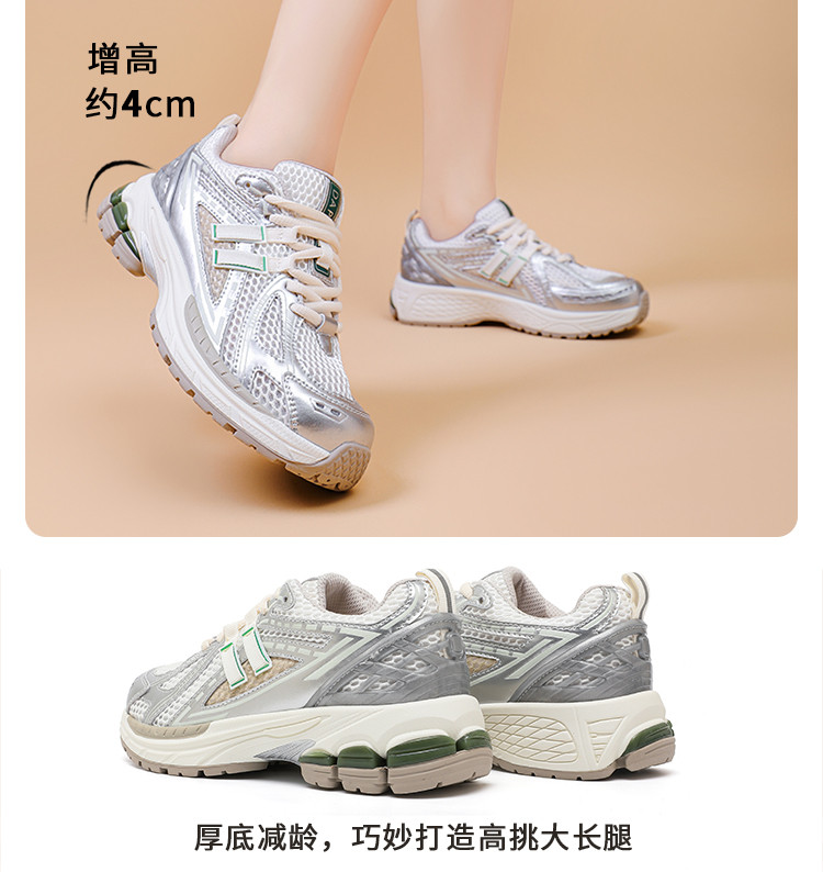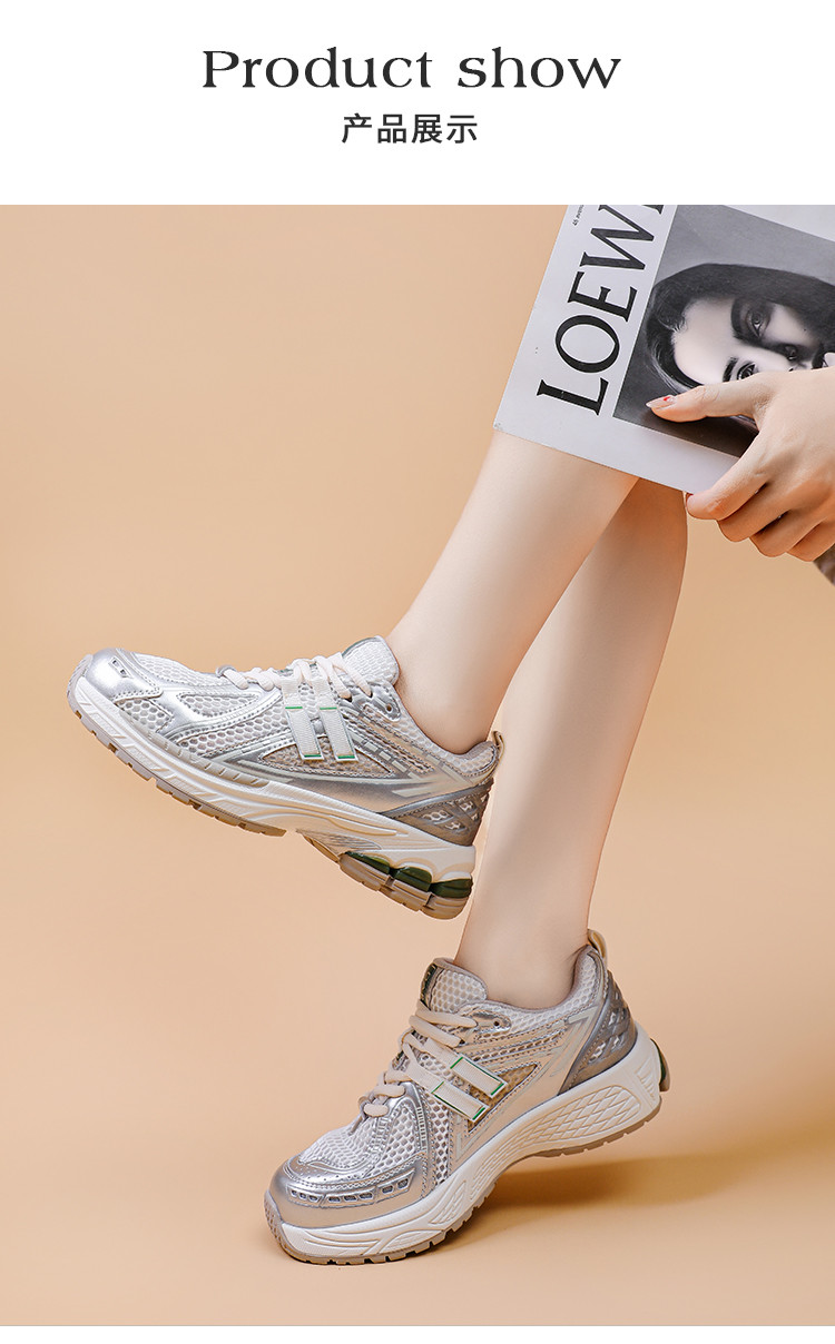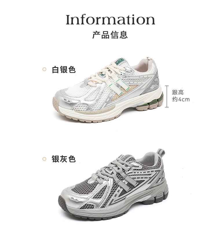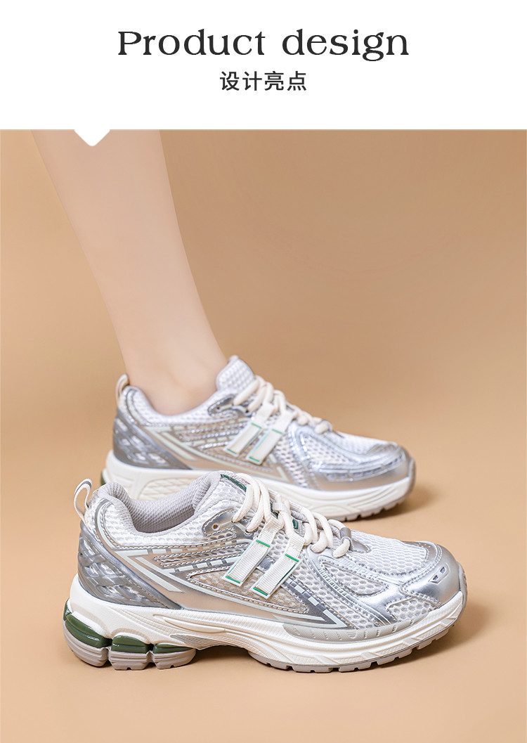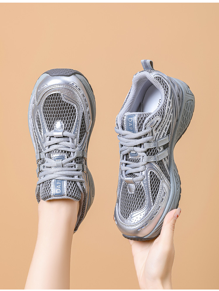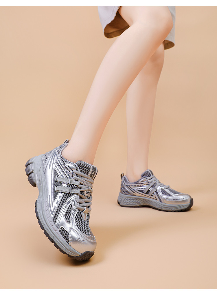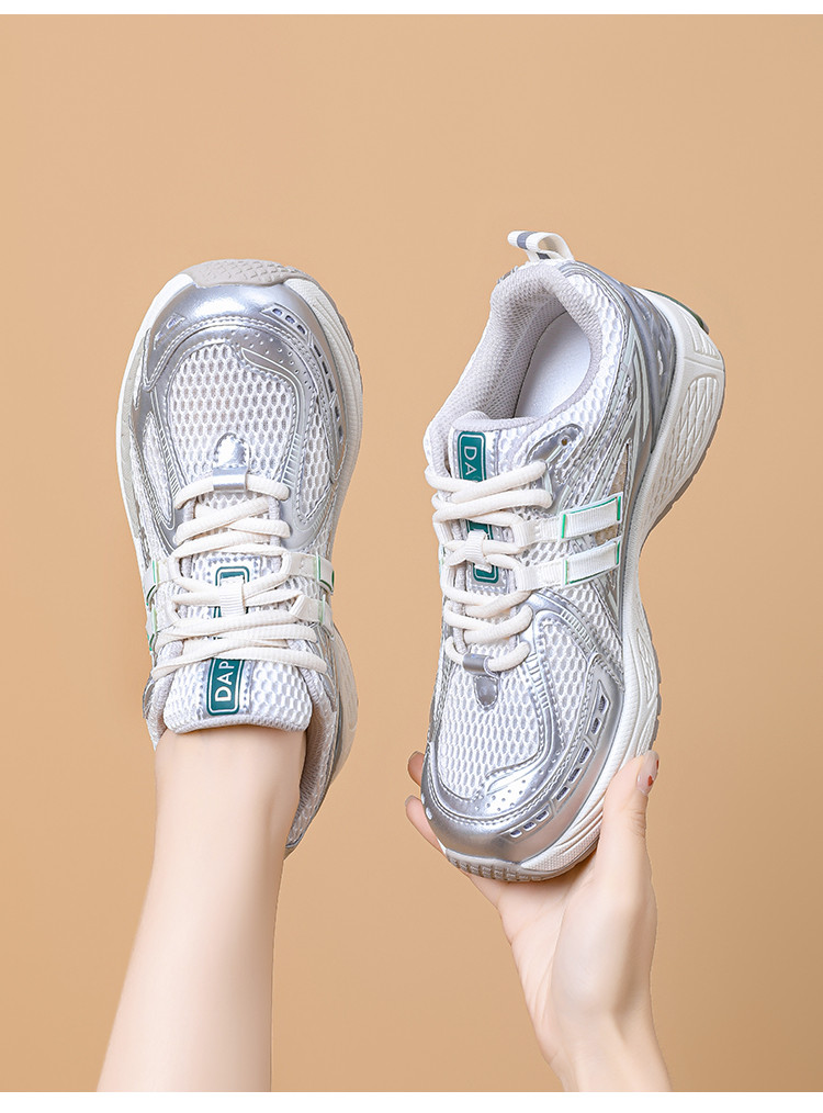 商品名称:厚底老爹鞋女春夏透气网面鞋显脚小轻便运动休闲鞋银色潮款女鞋 784727
