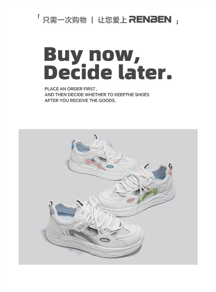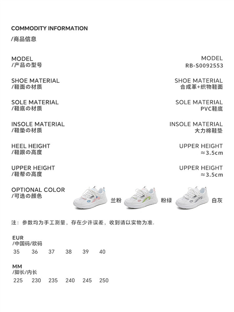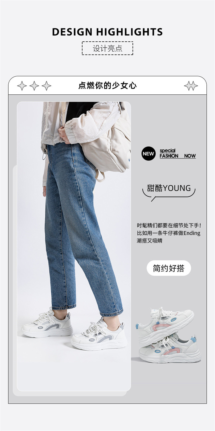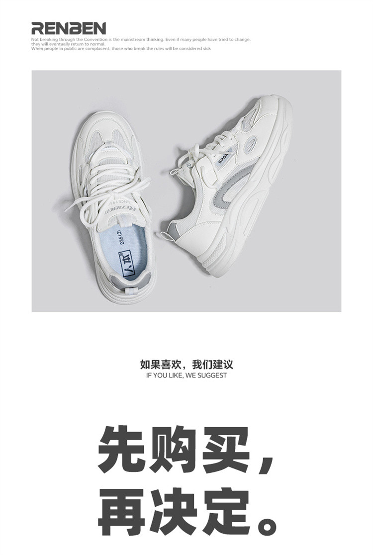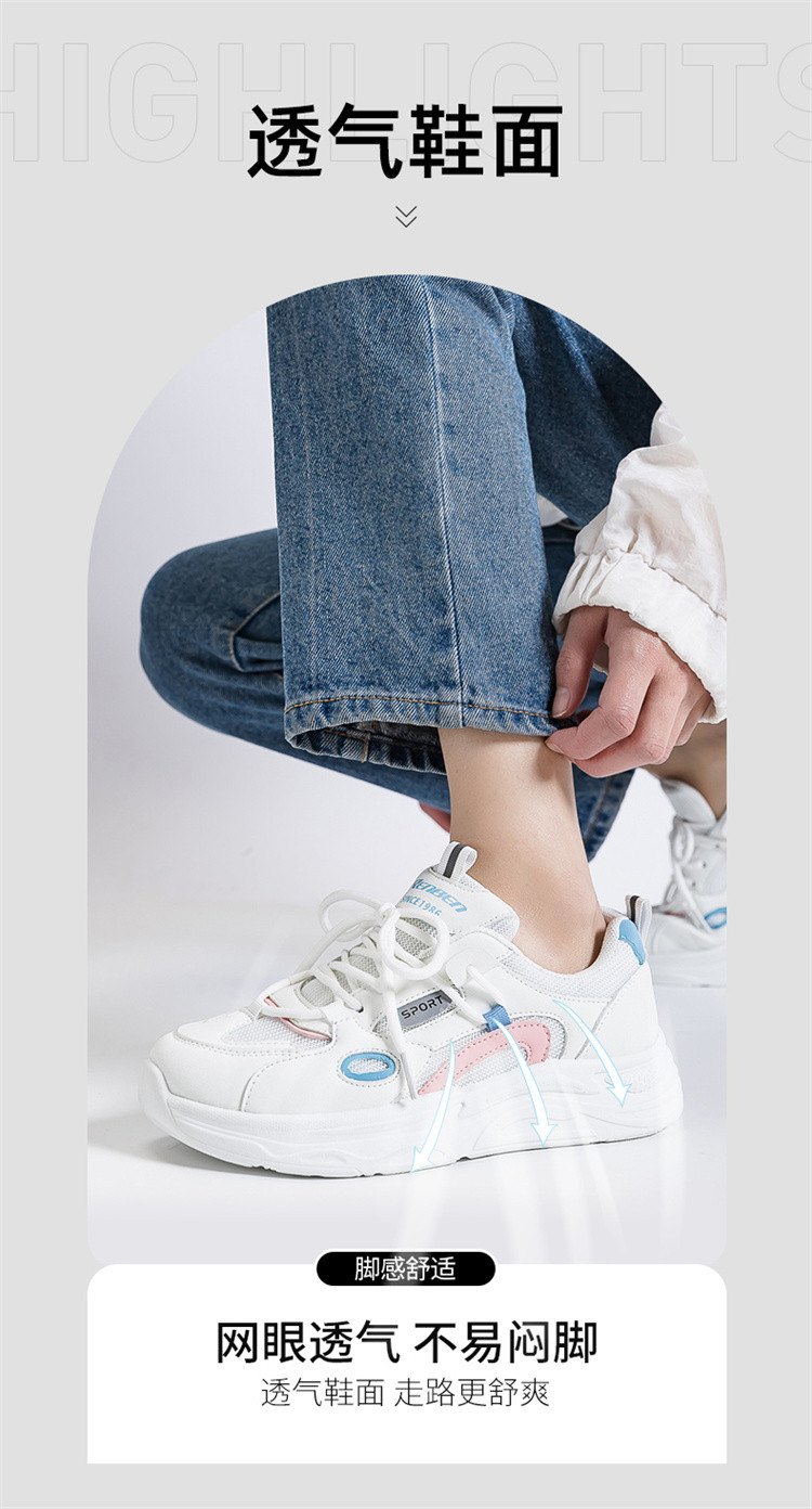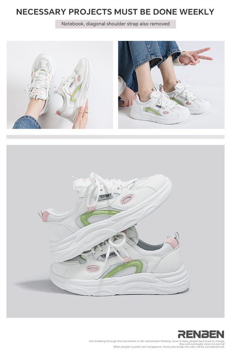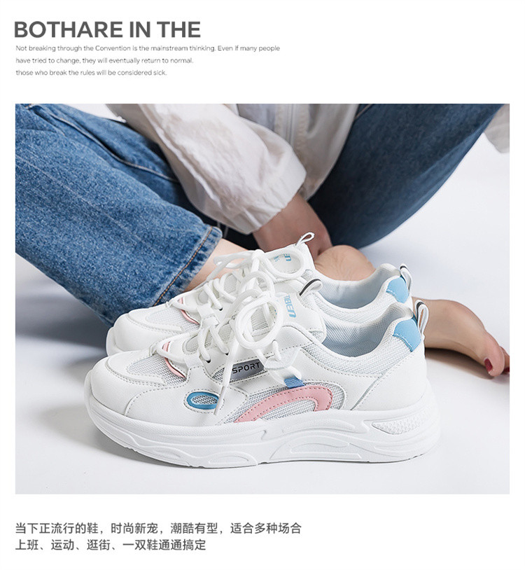 商品名称:春秋透气厚底小白鞋女2024休闲运动鞋子女学院风轻便老爹鞋女 476295