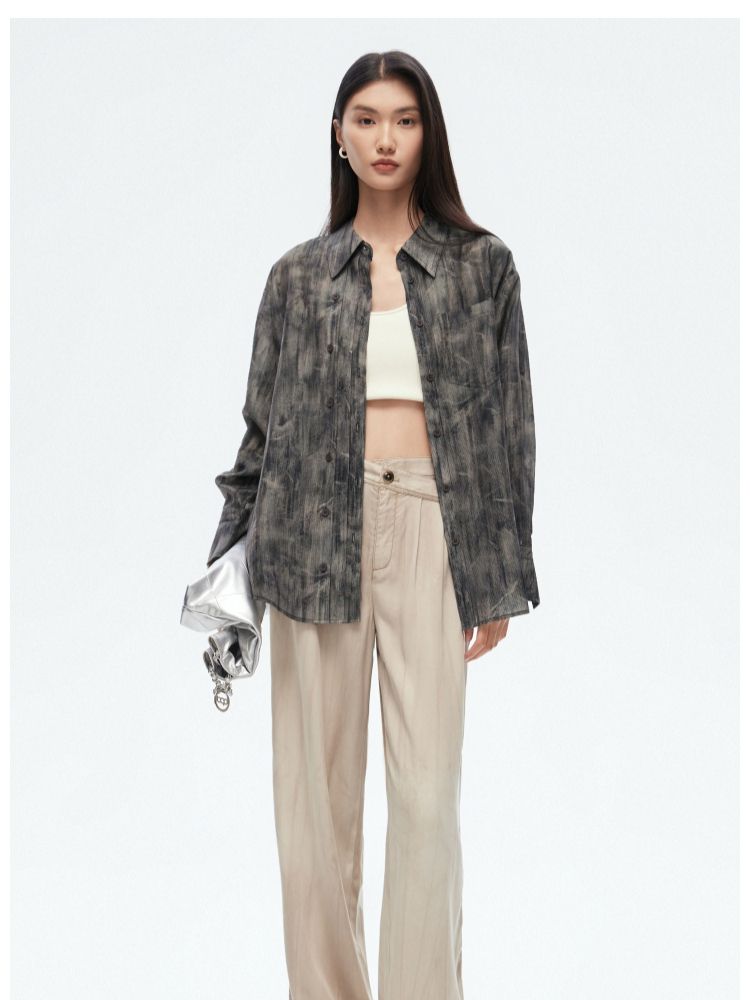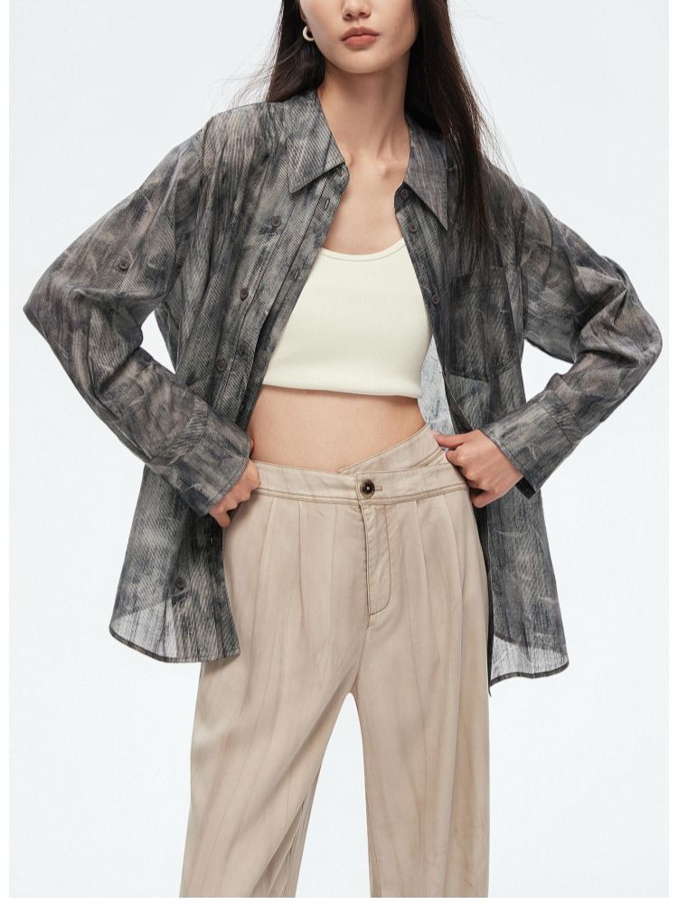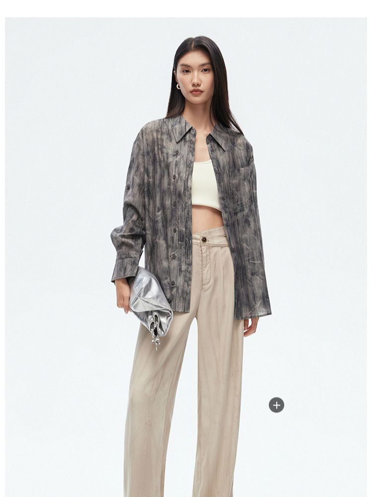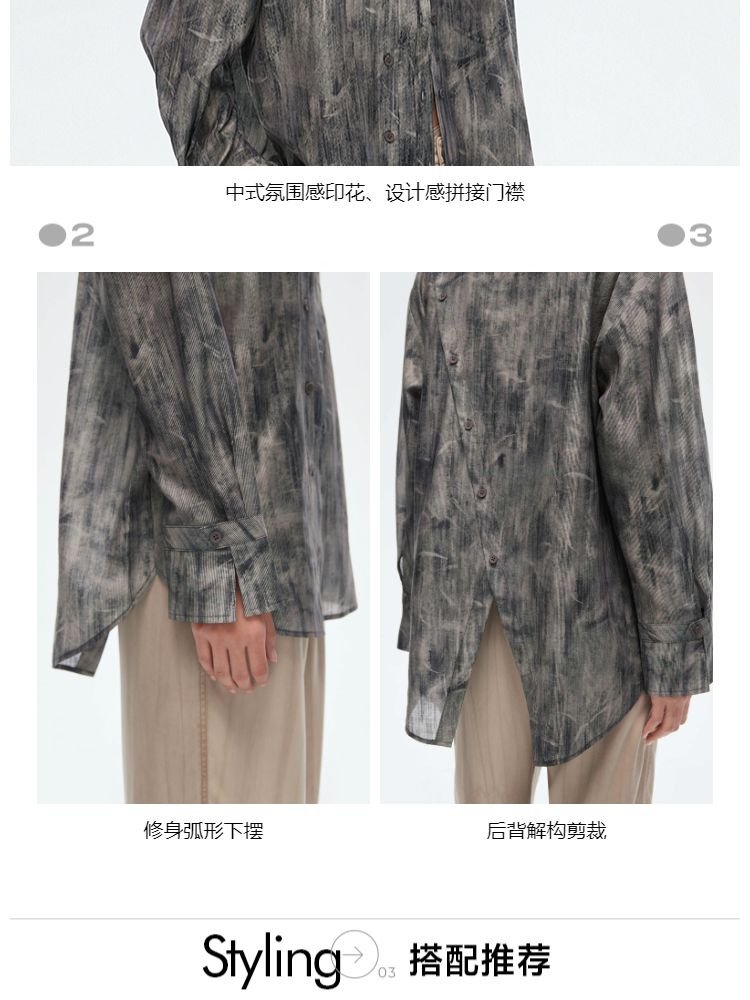 【宽松翻领】夏季含莱赛尔新中式时尚印花薄款宽松翻领衬衫女 086554