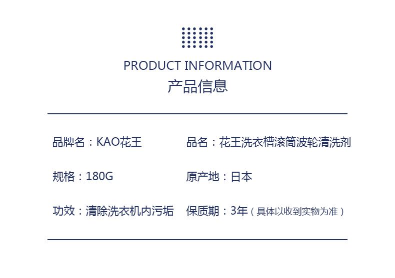 商品名称:日本 花王洗衣槽滚筒波轮清洗剂洗衣机槽 180g