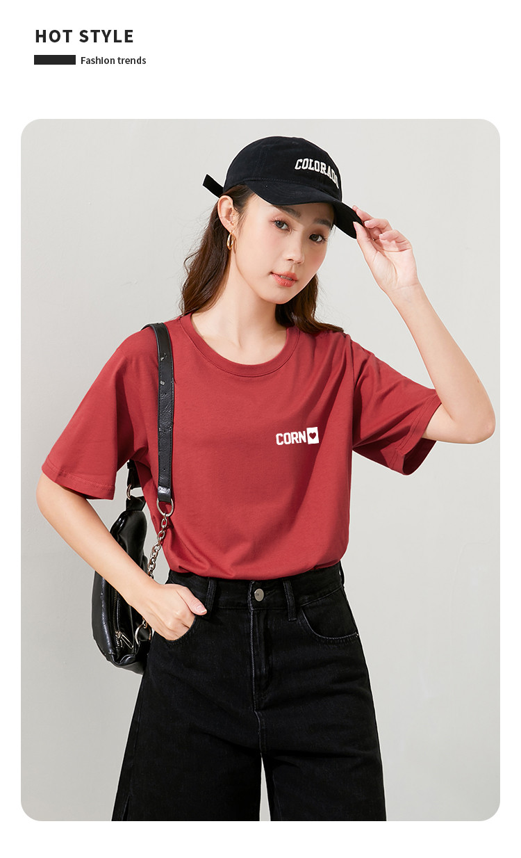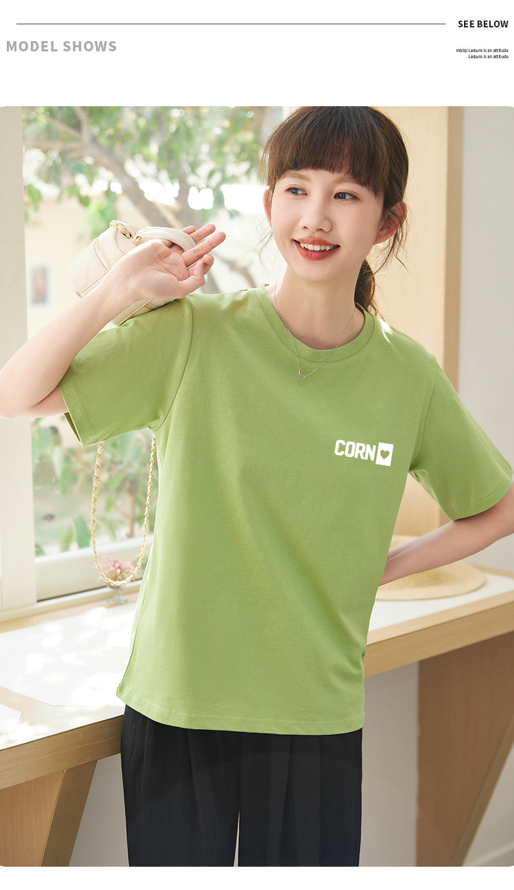 商品名称:米子旗夏季百搭圆领字母印花T恤女遮肉高级感短袖上衣 919642