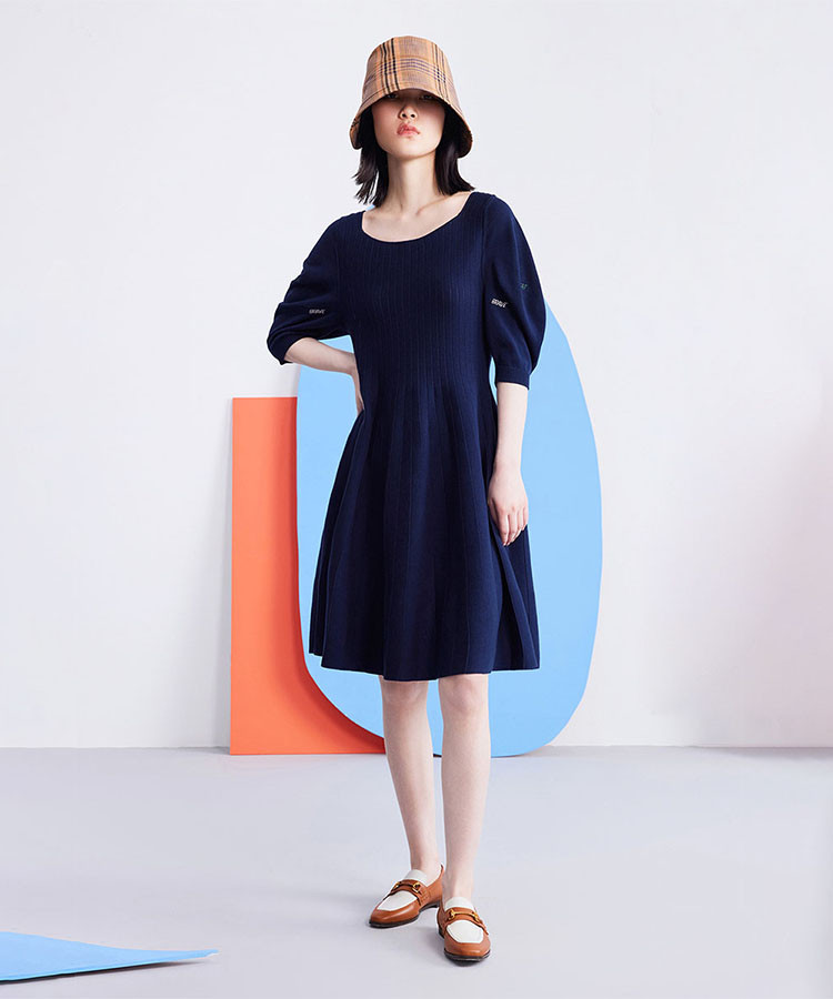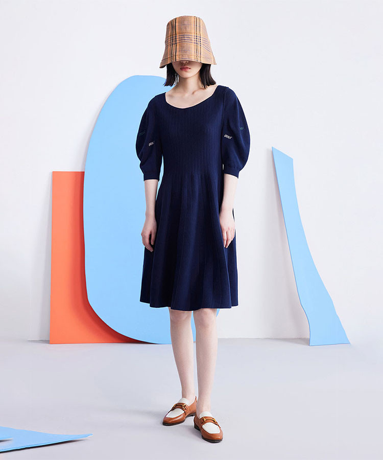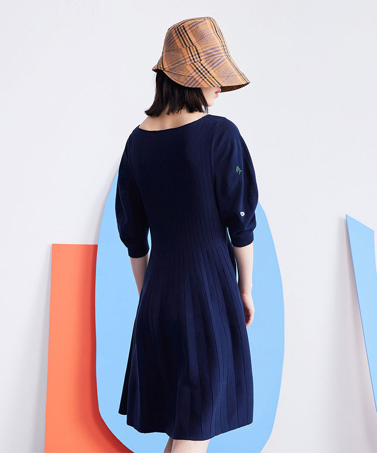 商品名称:PORTS PURE宝姿女装趣味刺绣泡泡袖针织连衣裙 261386