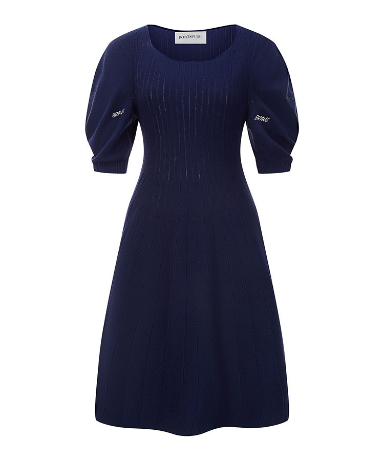 PORTS PURE宝姿女装趣味刺绣泡泡袖针织连衣裙 261386