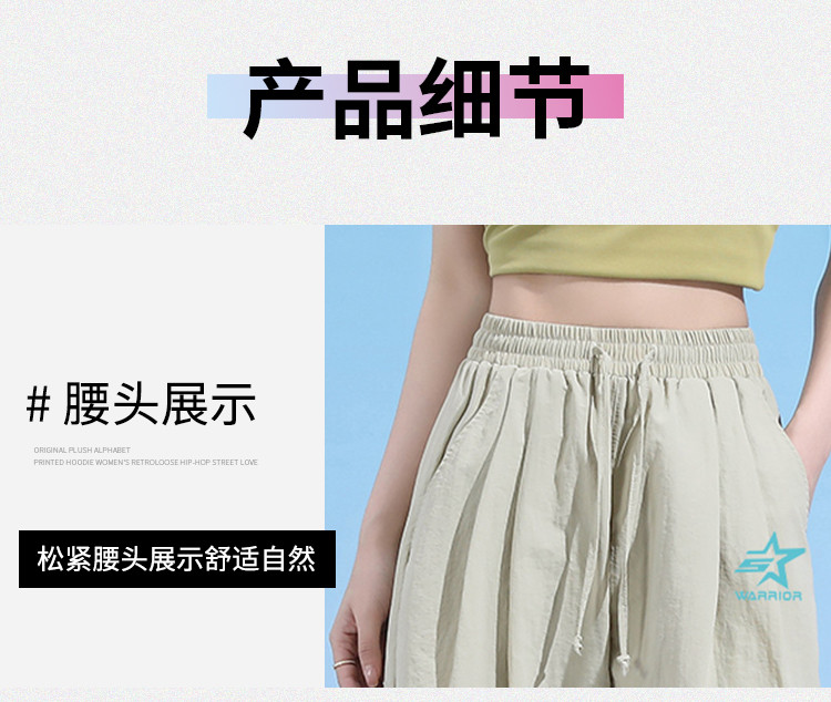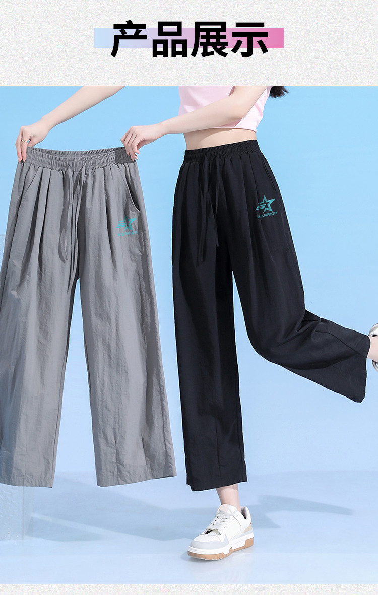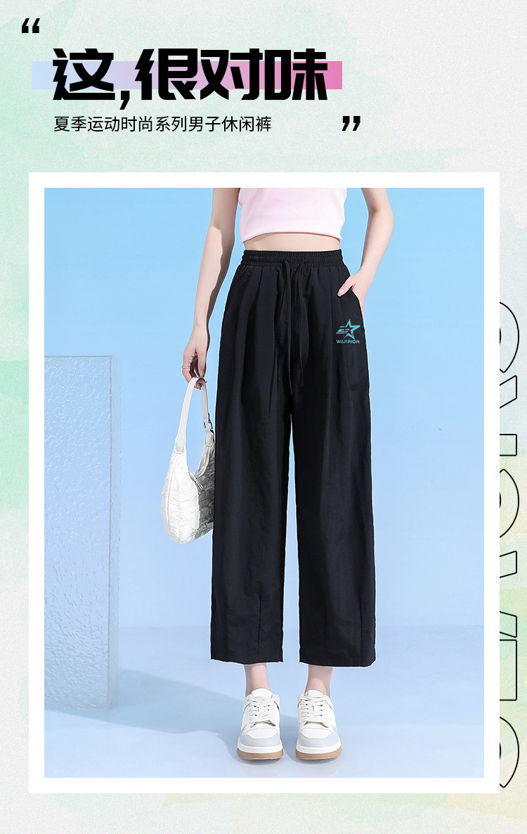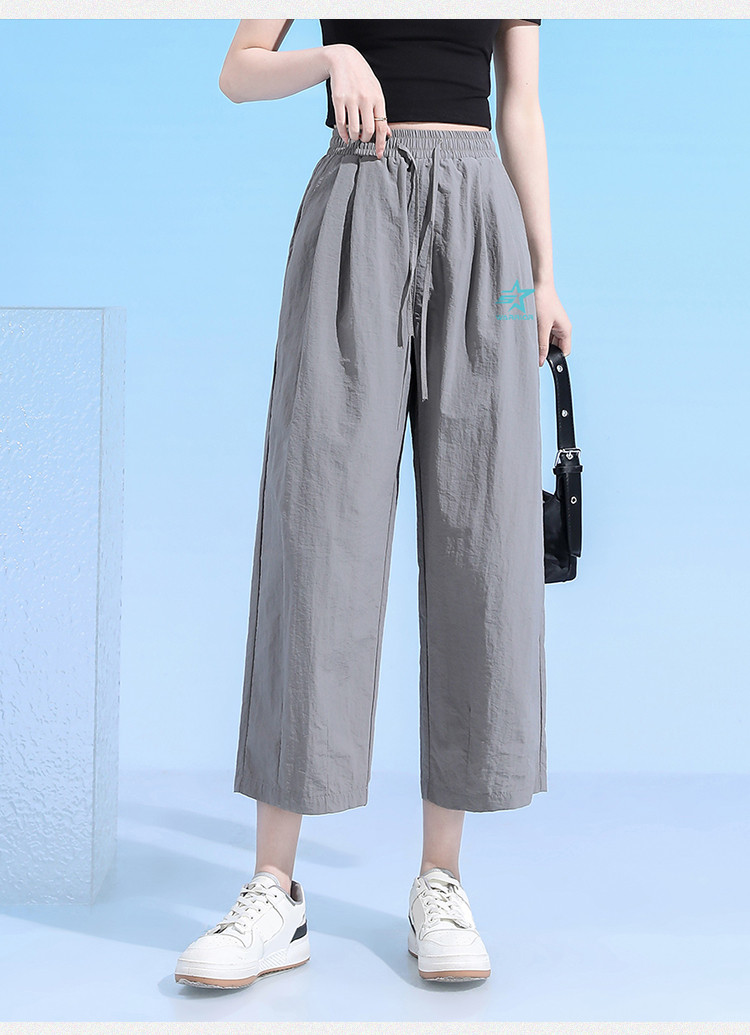 商品名称:夏季清爽舒适九分休闲裤女宽松显瘦显高休闲百搭纯色阔脚直筒裤女 662803
