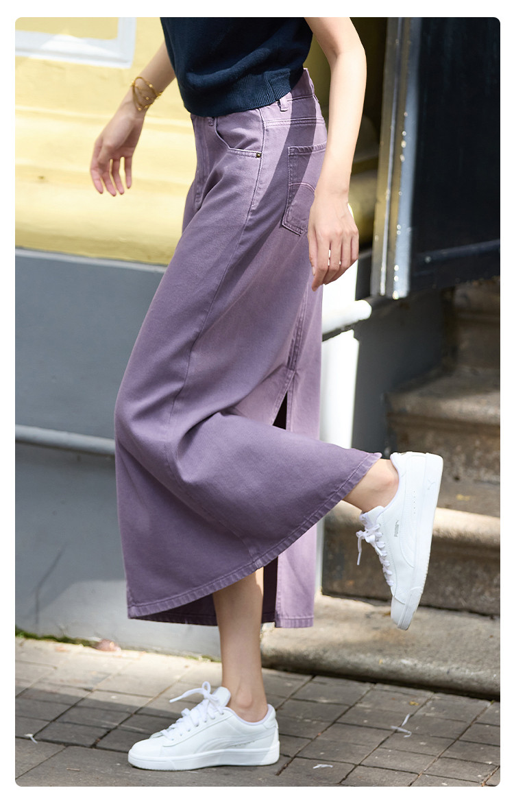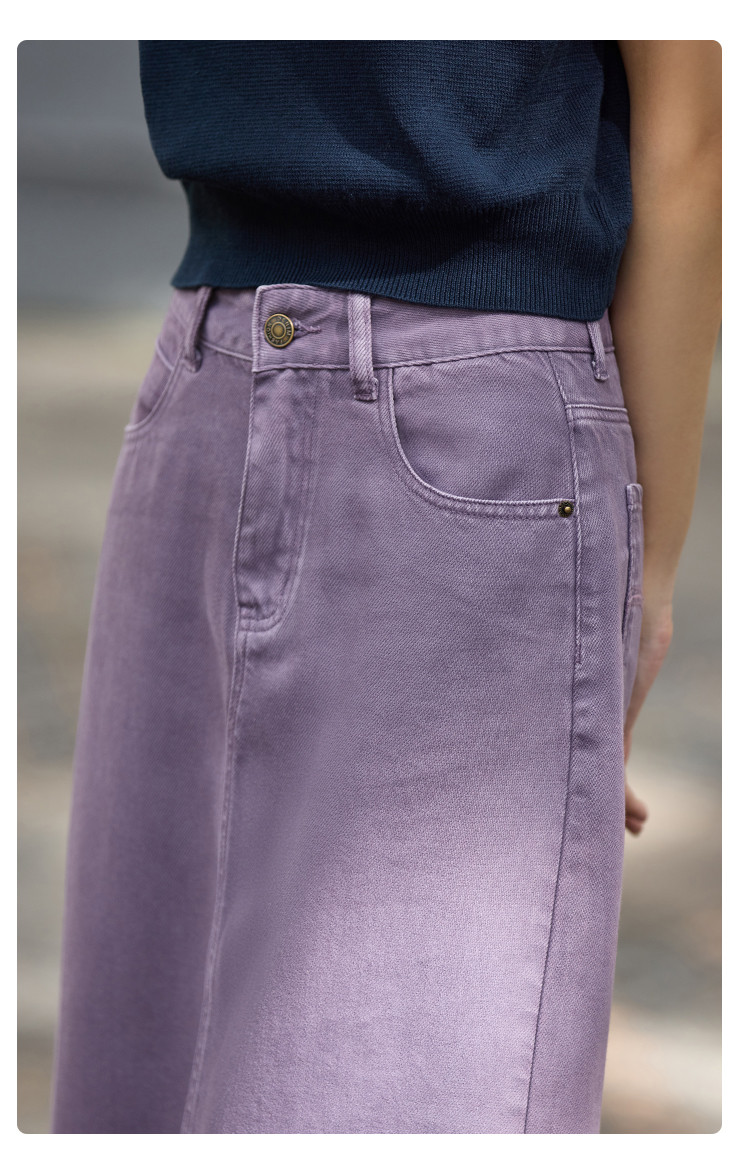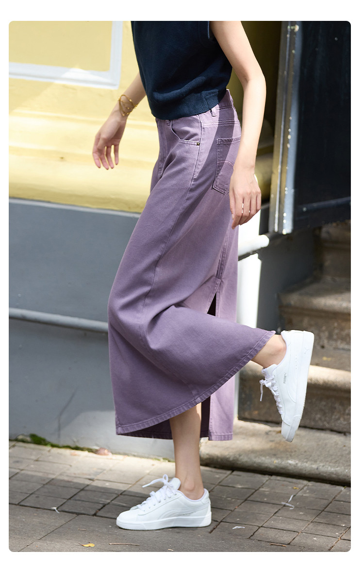 【魔力一步】春夏薄款高腰显瘦中长款牛仔半裙女开叉直筒裙女 162497