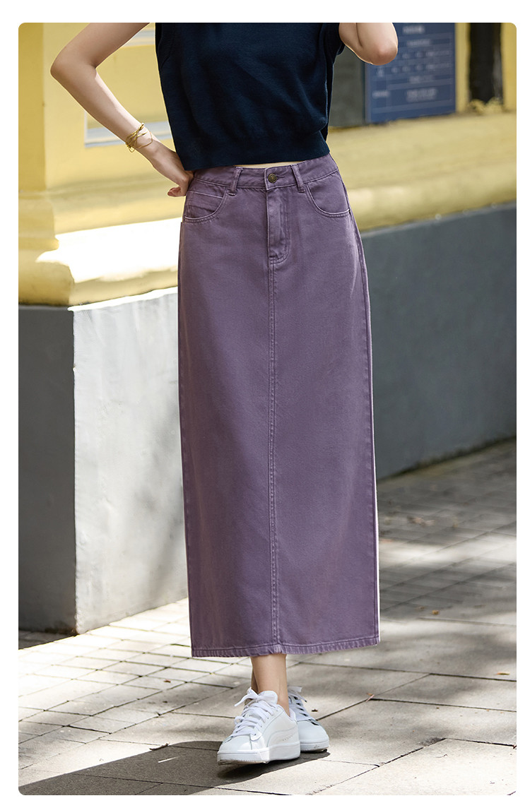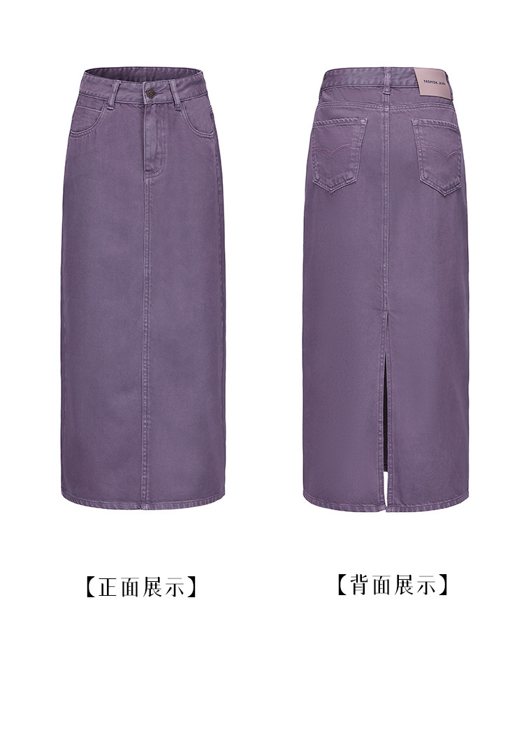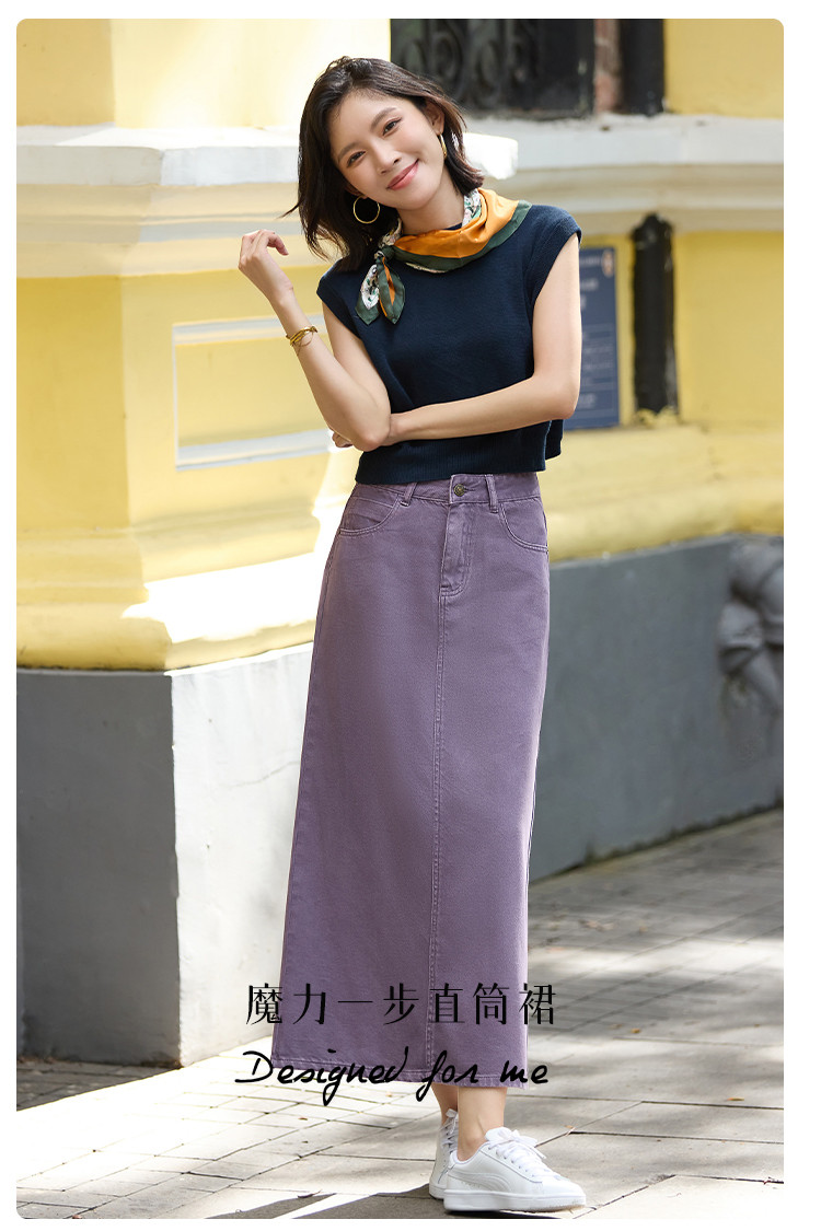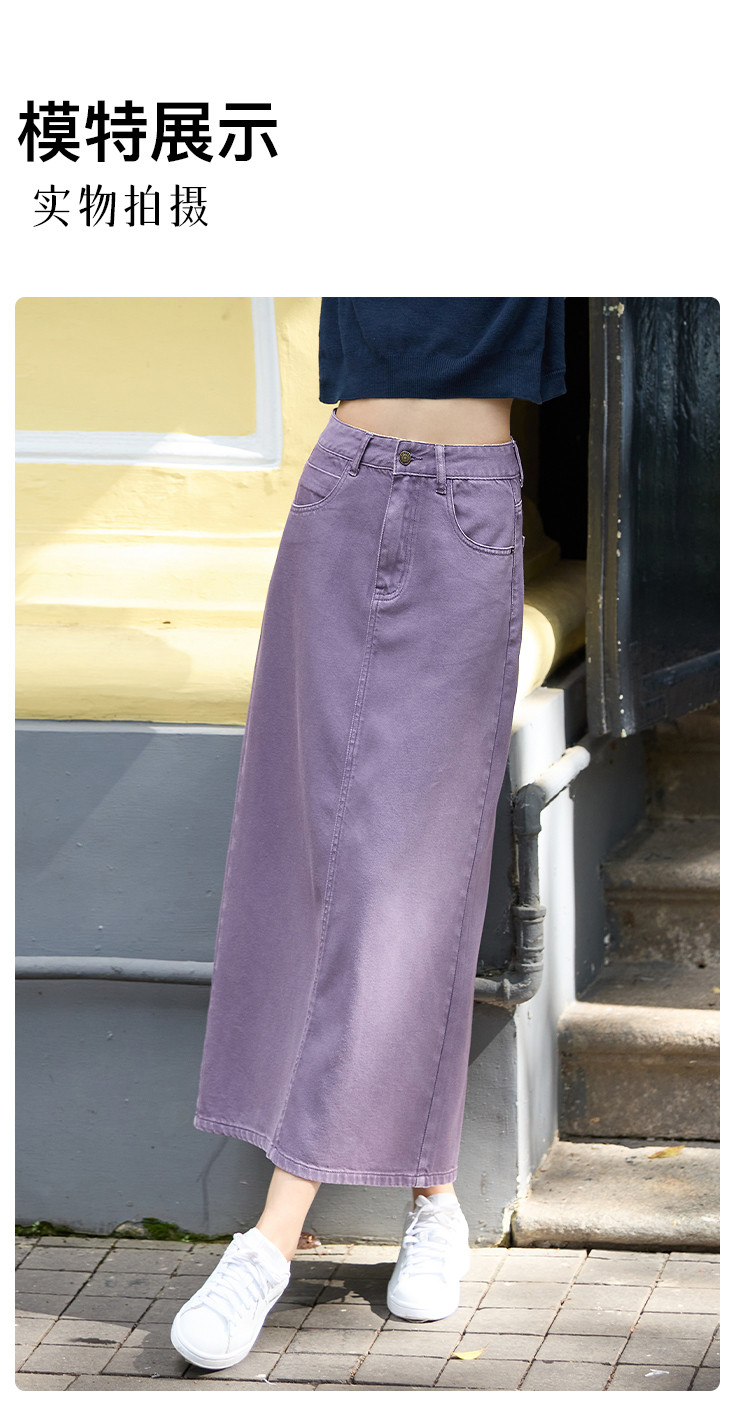 商品名称:【魔力一步】春夏薄款高腰显瘦中长款牛仔半裙女开叉直筒裙女 162497