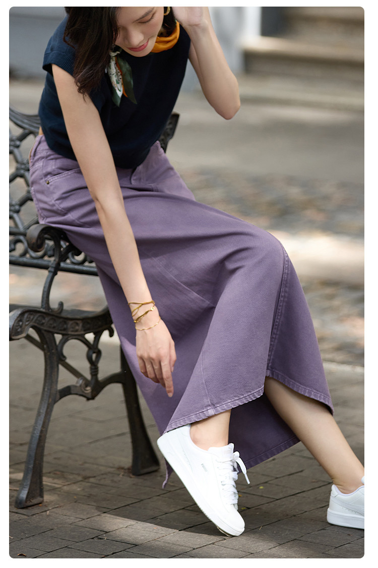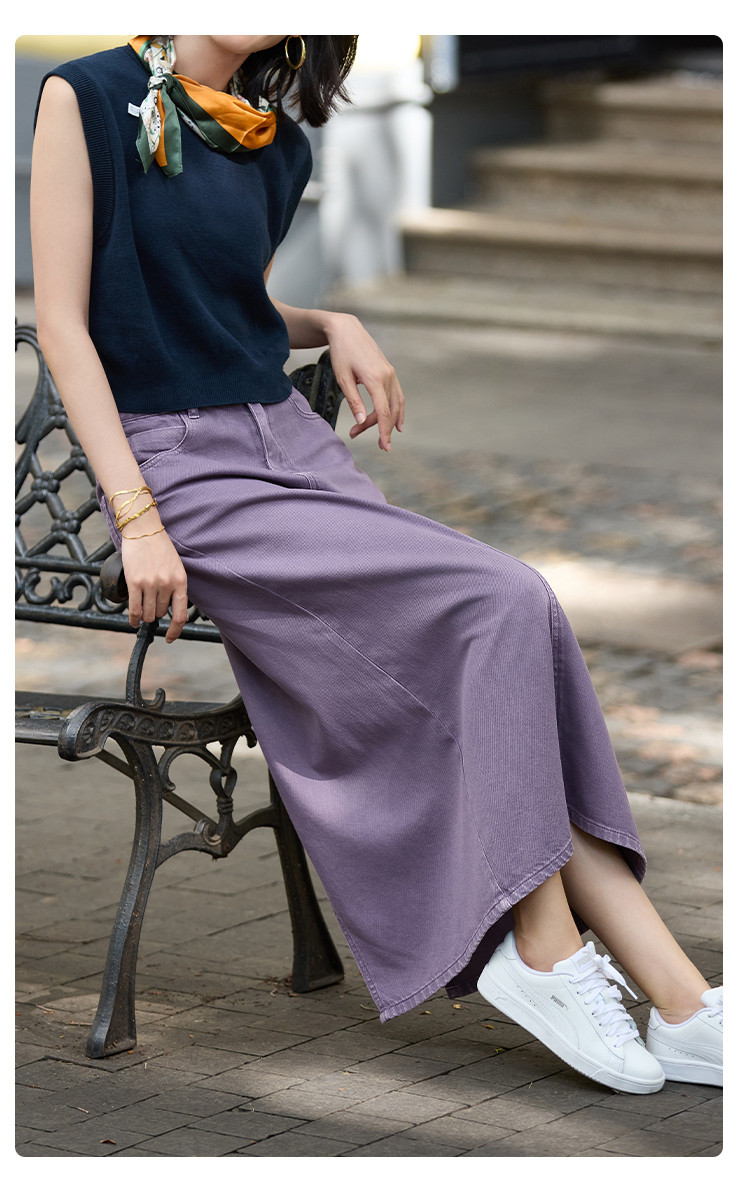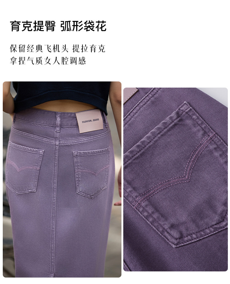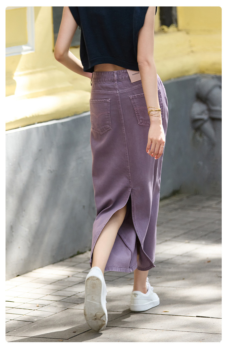 商品名称:【魔力一步】春夏薄款高腰显瘦中长款牛仔半裙女开叉直筒裙女 162497