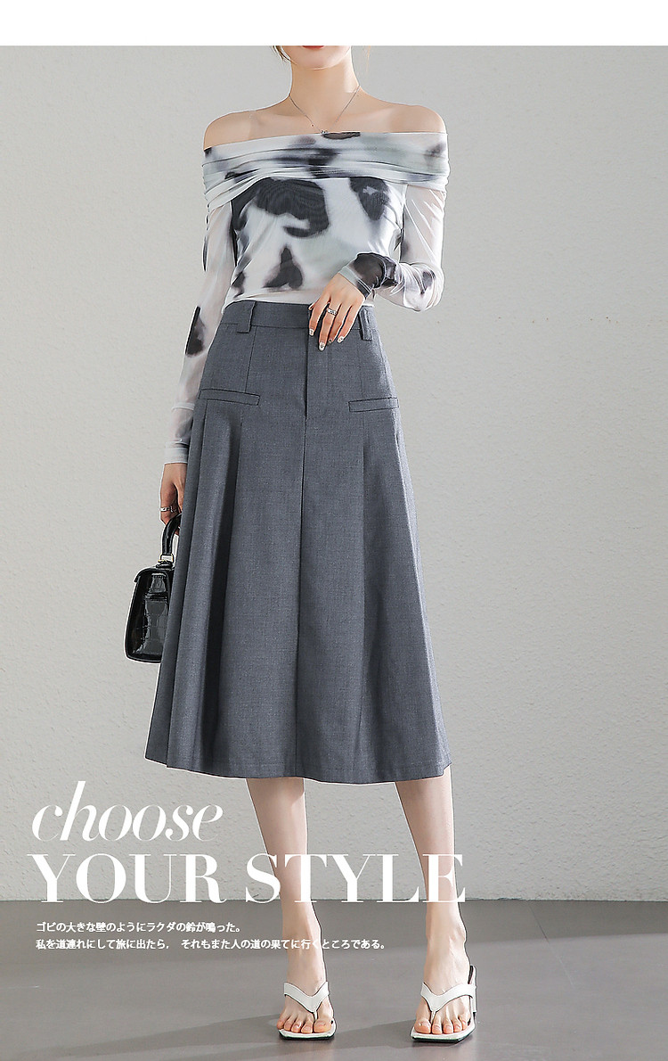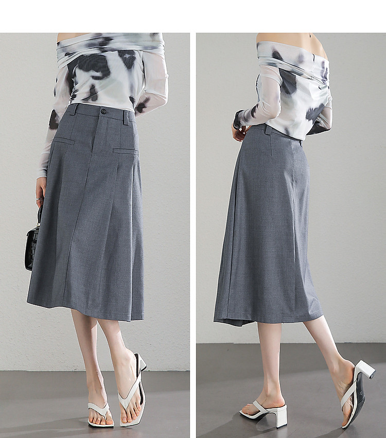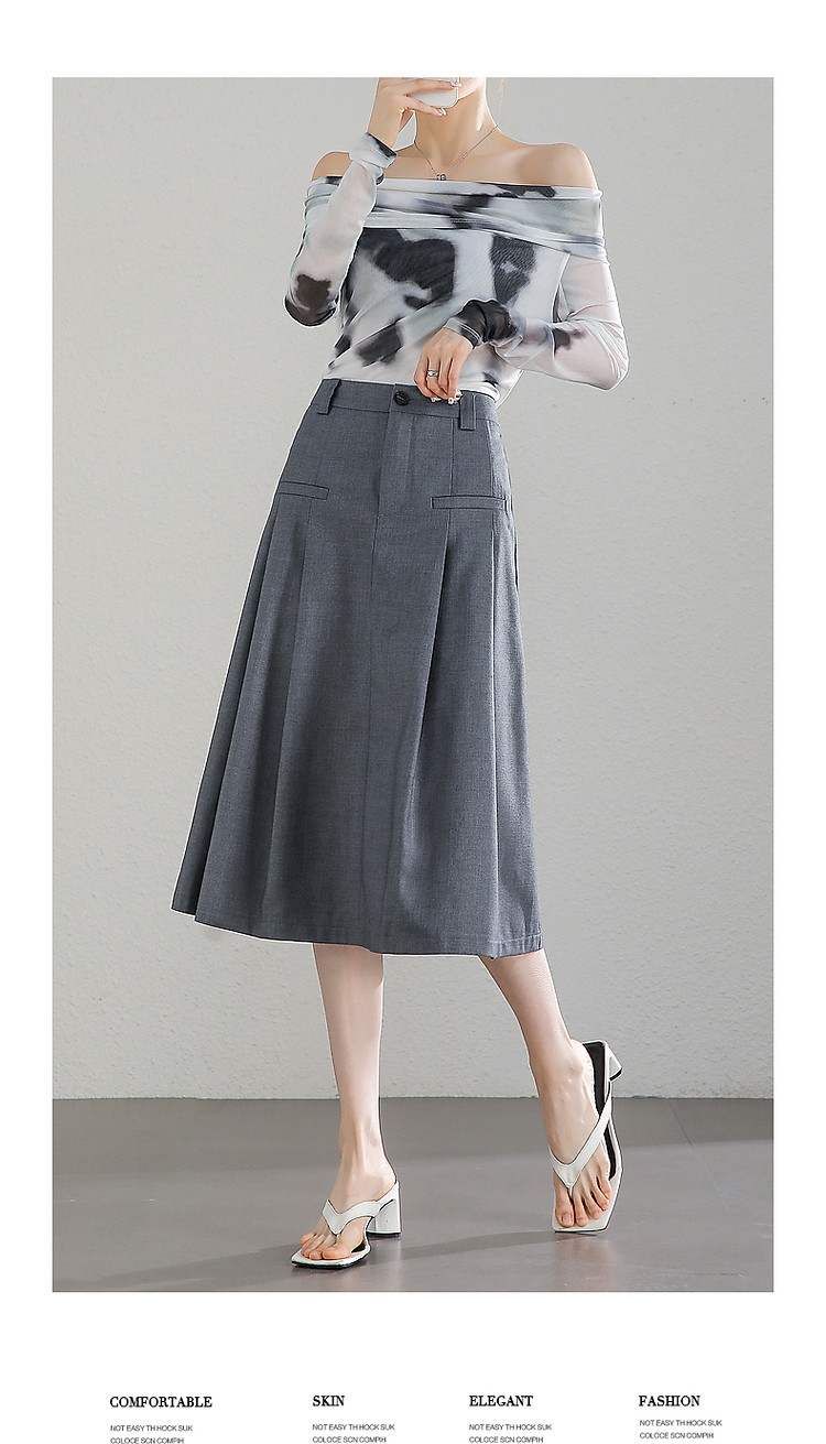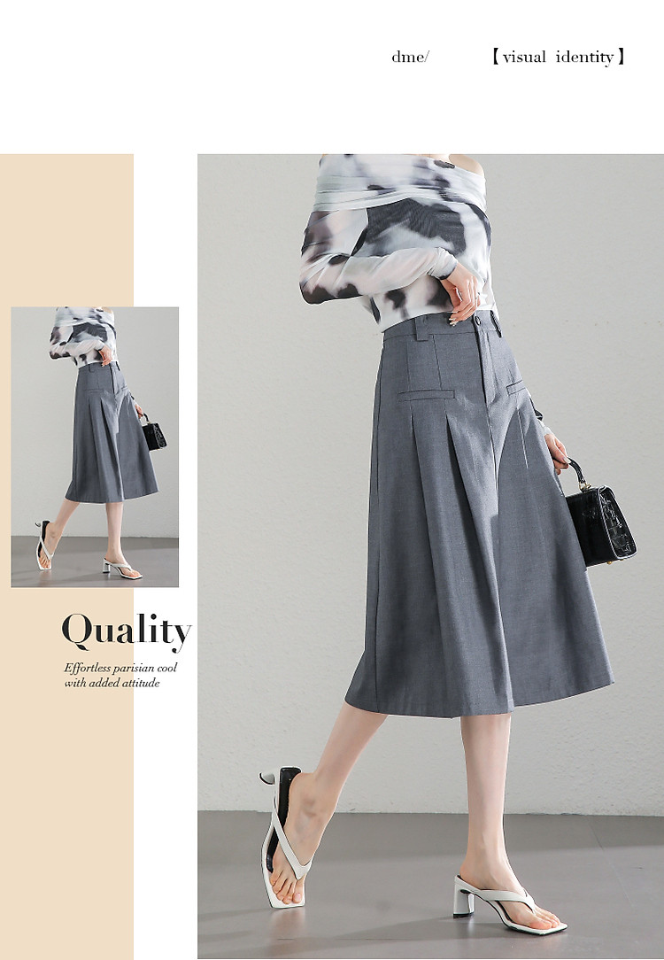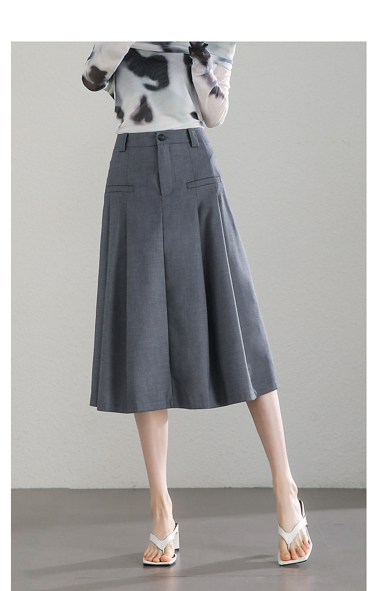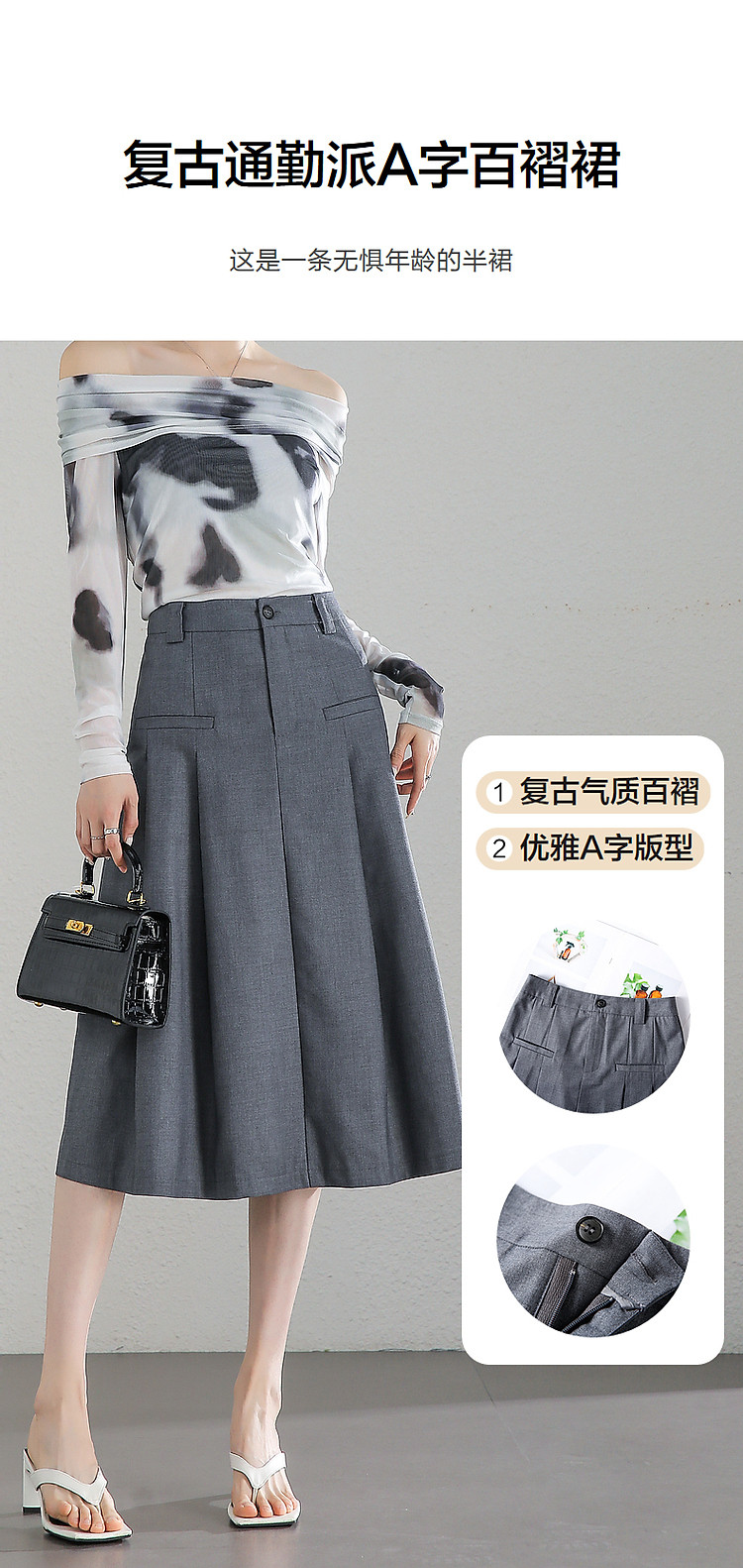商品名称:【秘境情书】春秋复古风百褶裙一字袋装饰A字压褶半身裙女中长款 590785