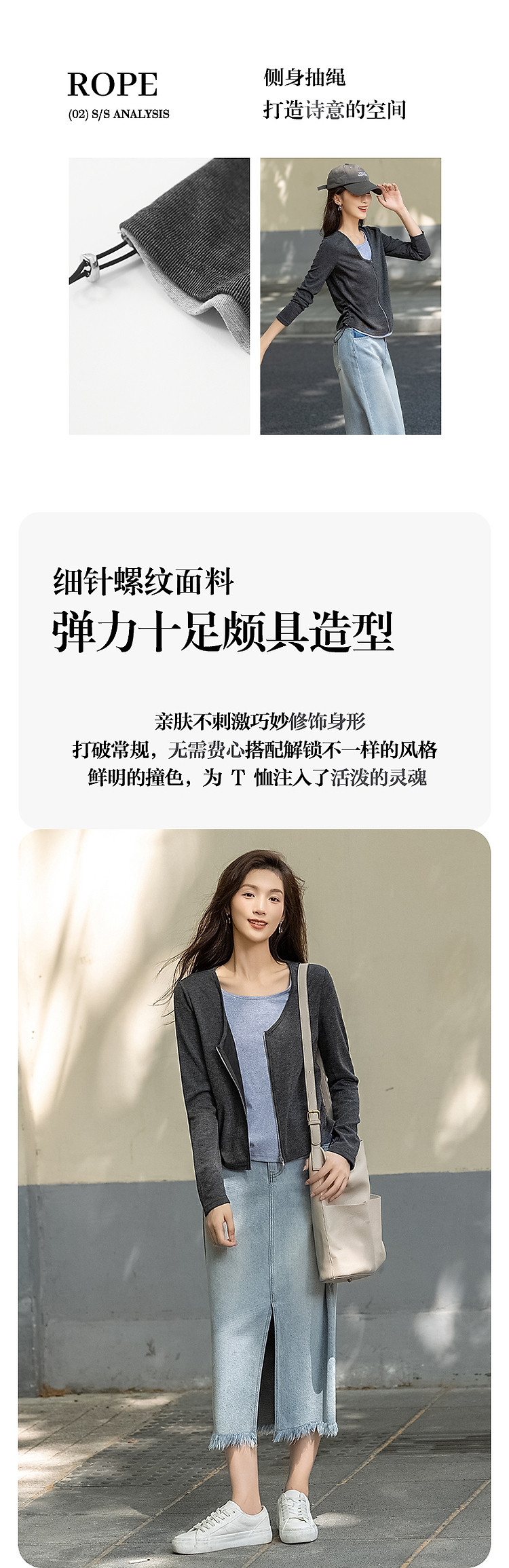 商品名称:【时髦假两件拼色t恤】秋简约圆领舒适细针罗纹侧缝橡筋女式t恤 014849