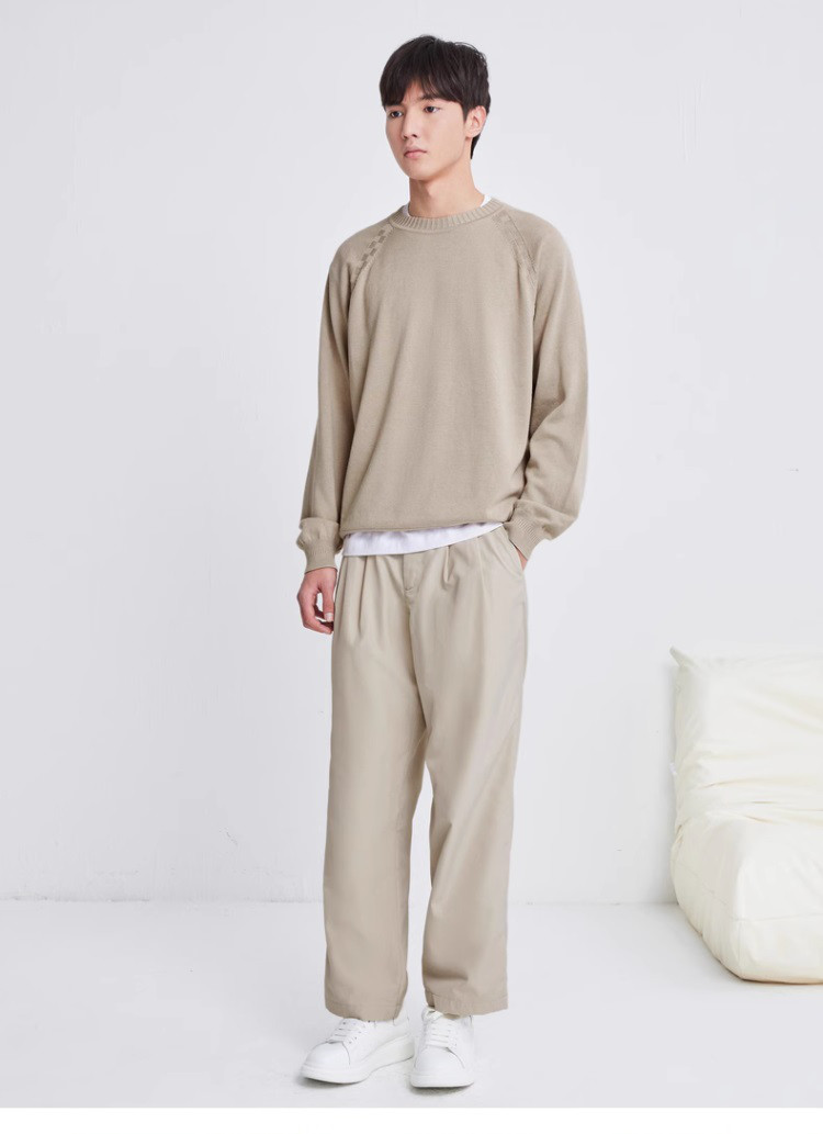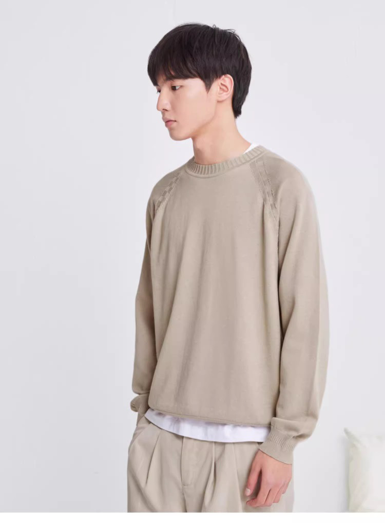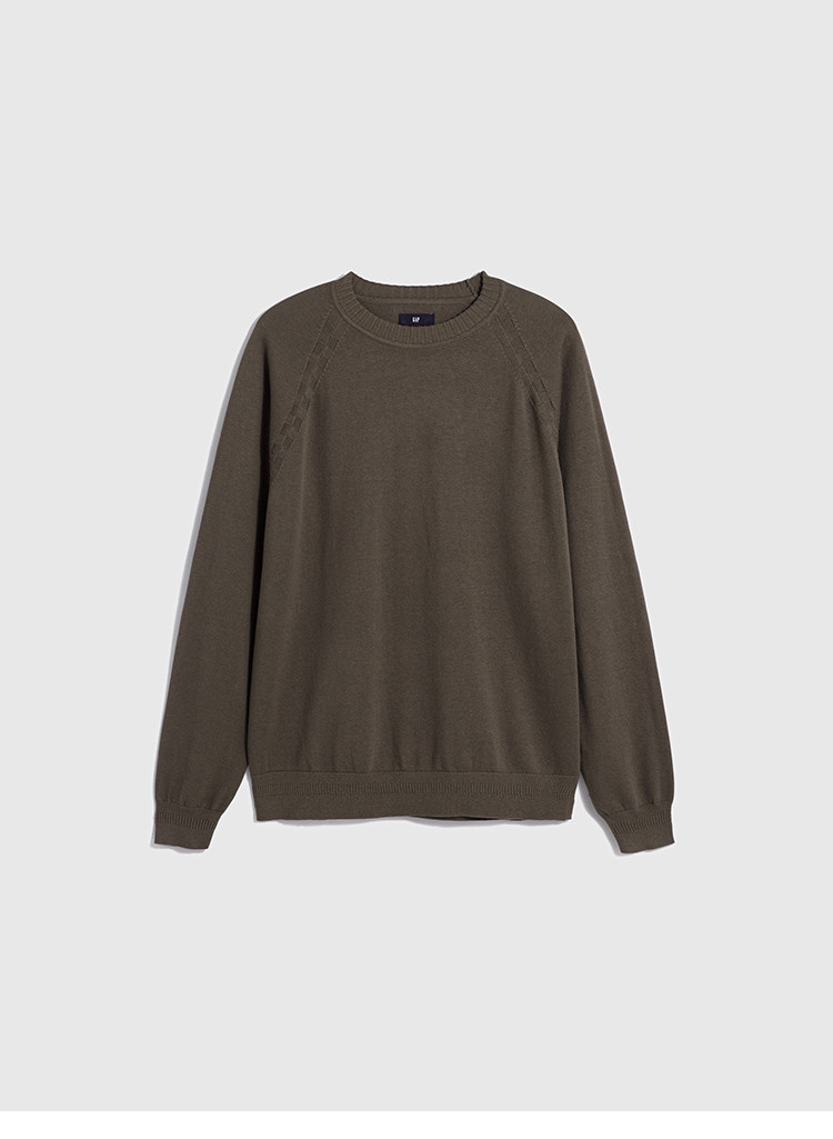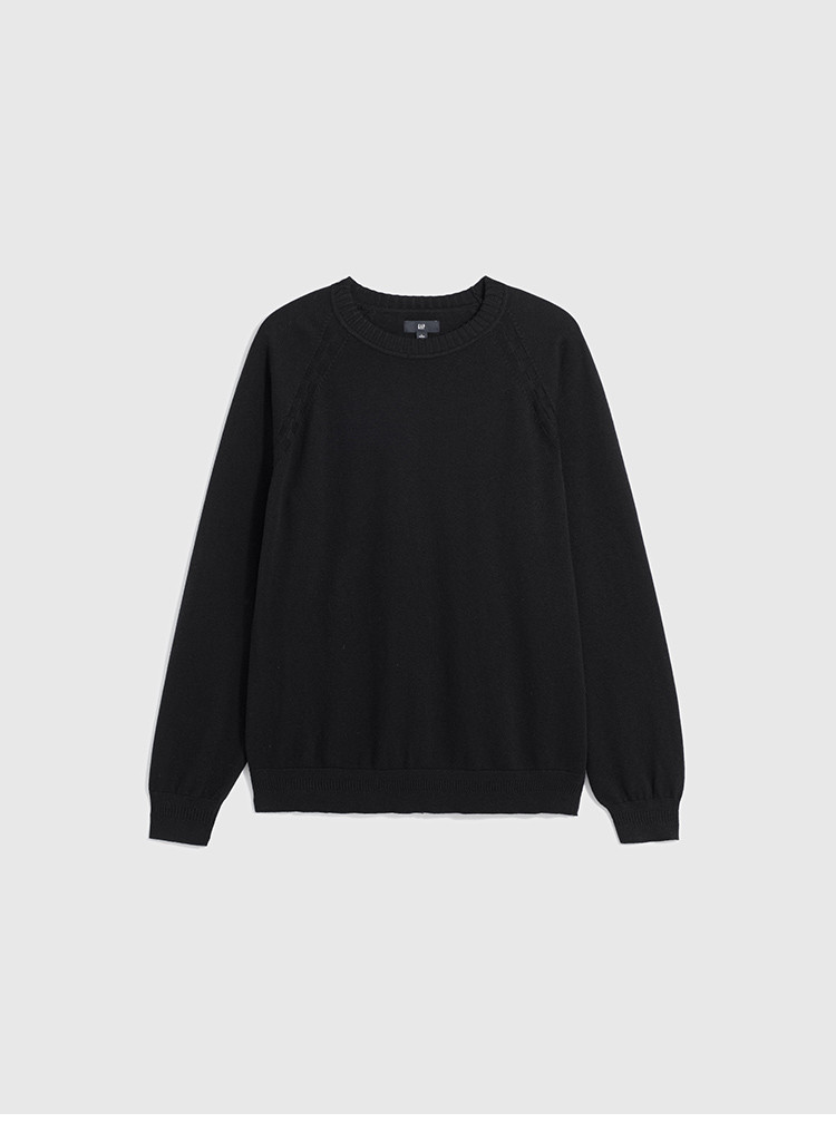 Gap男装春秋LOGO宽松混纺圆领针织衫高级时尚舒适休闲毛衣869031 350426