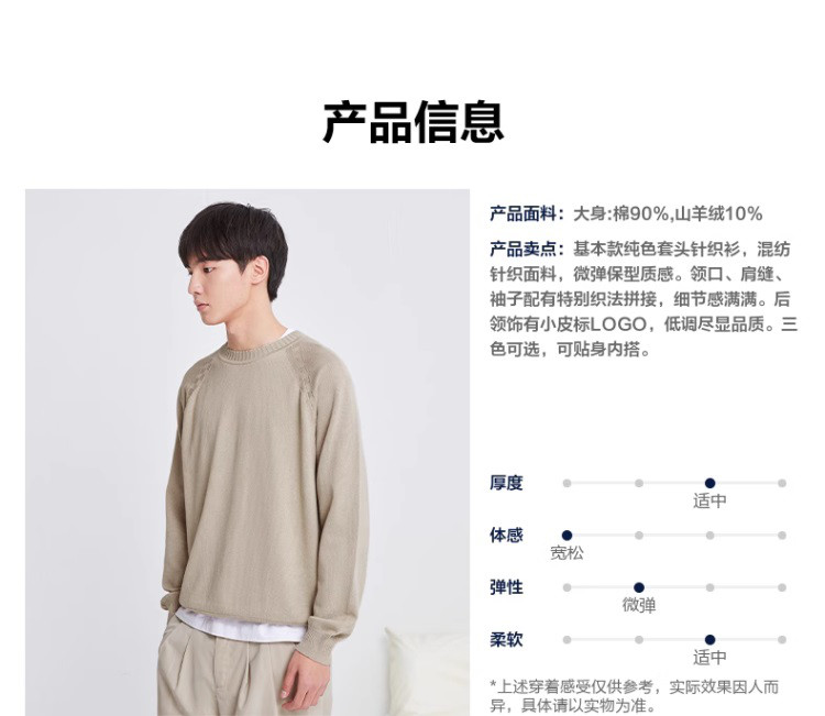 商品名称:Gap男装春秋LOGO宽松混纺圆领针织衫高级时尚舒适休闲毛衣869031 350426