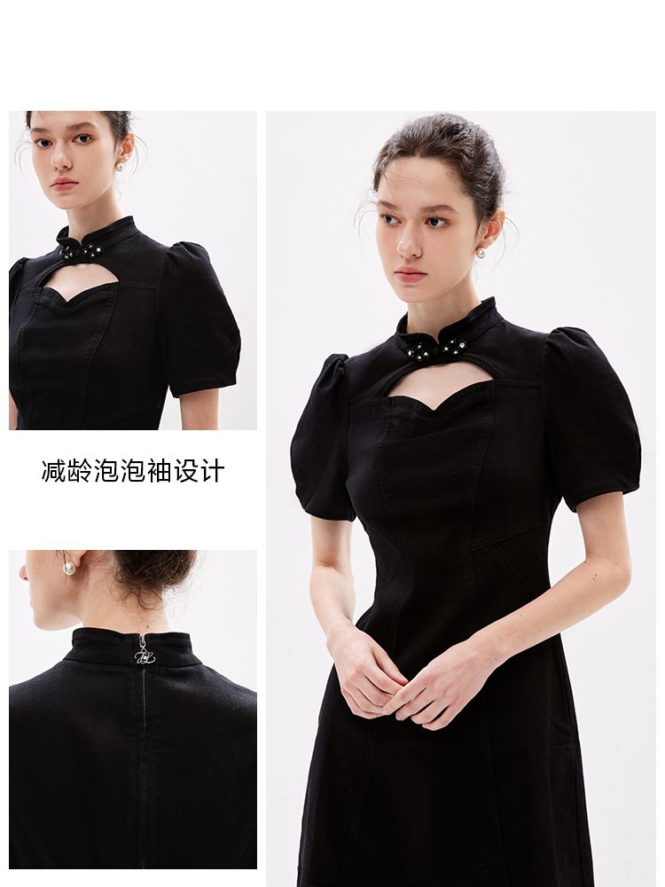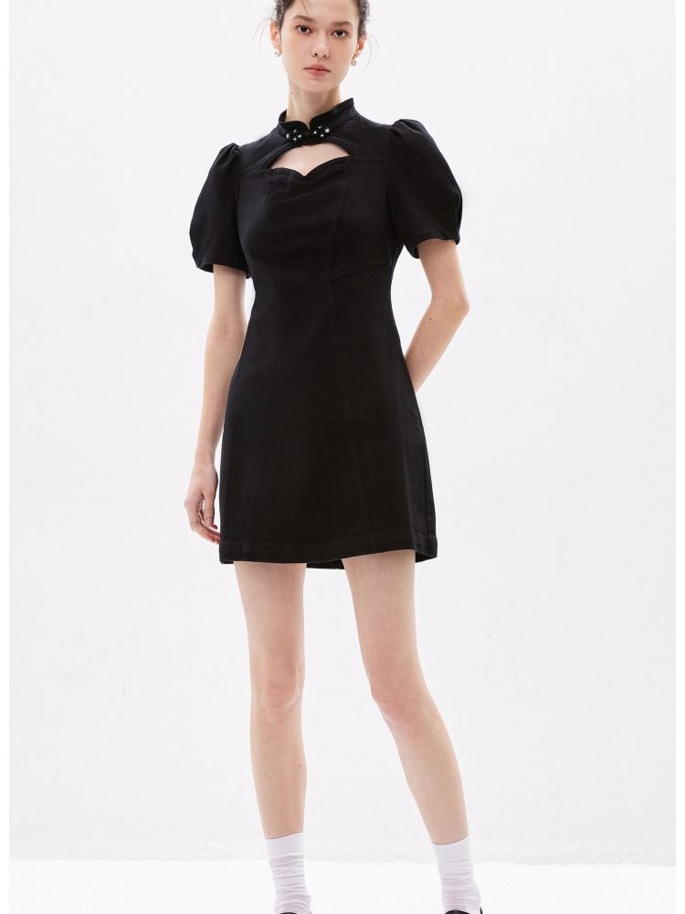 【新中式】夏季时尚气质盘扣泡泡袖设计牛仔连衣裙女 032090