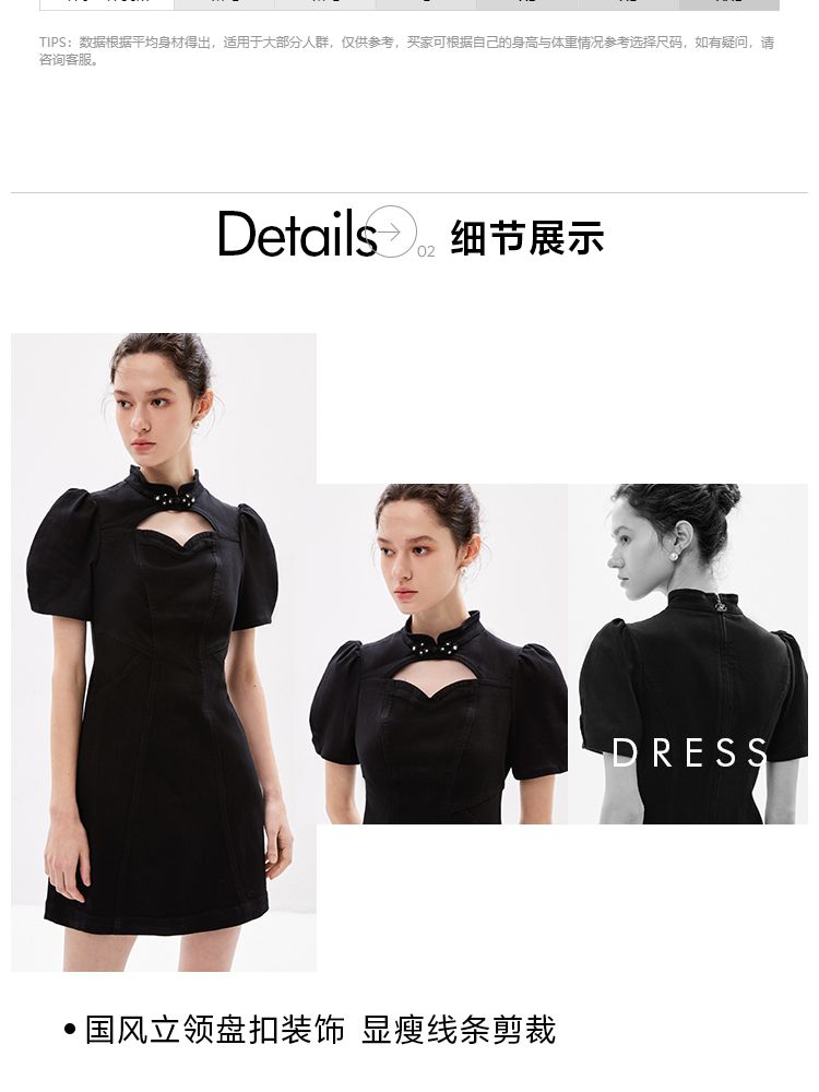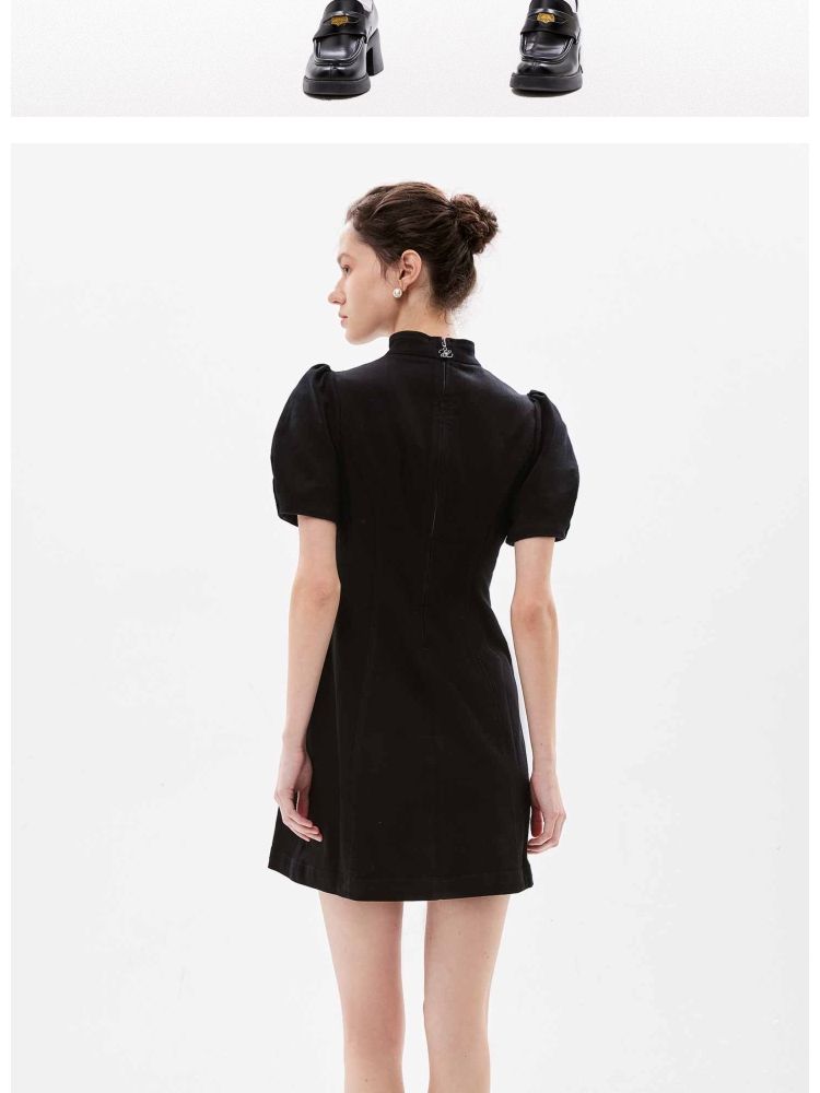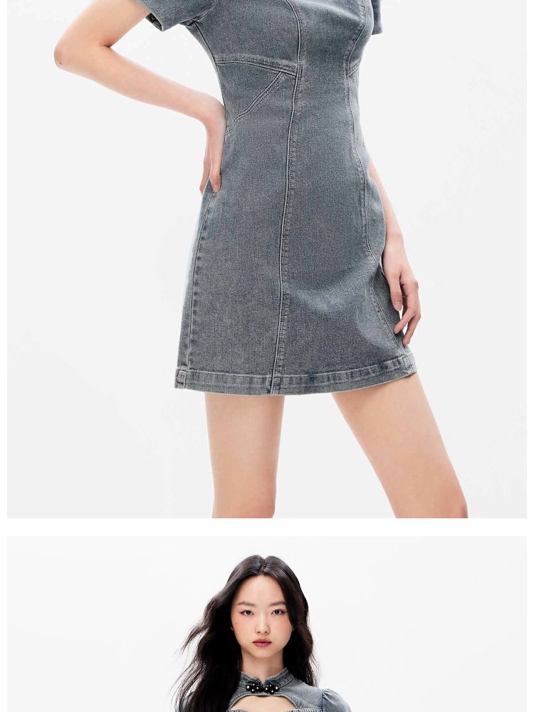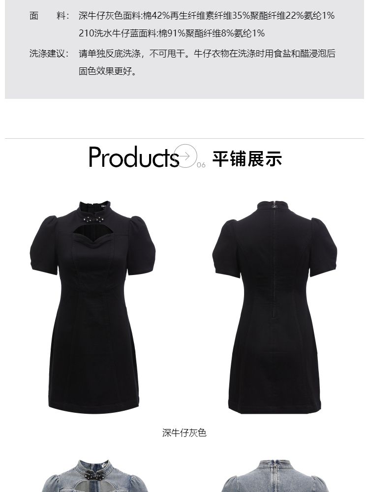 商品名称:【新中式】夏季时尚气质盘扣泡泡袖设计牛仔连衣裙女 032090