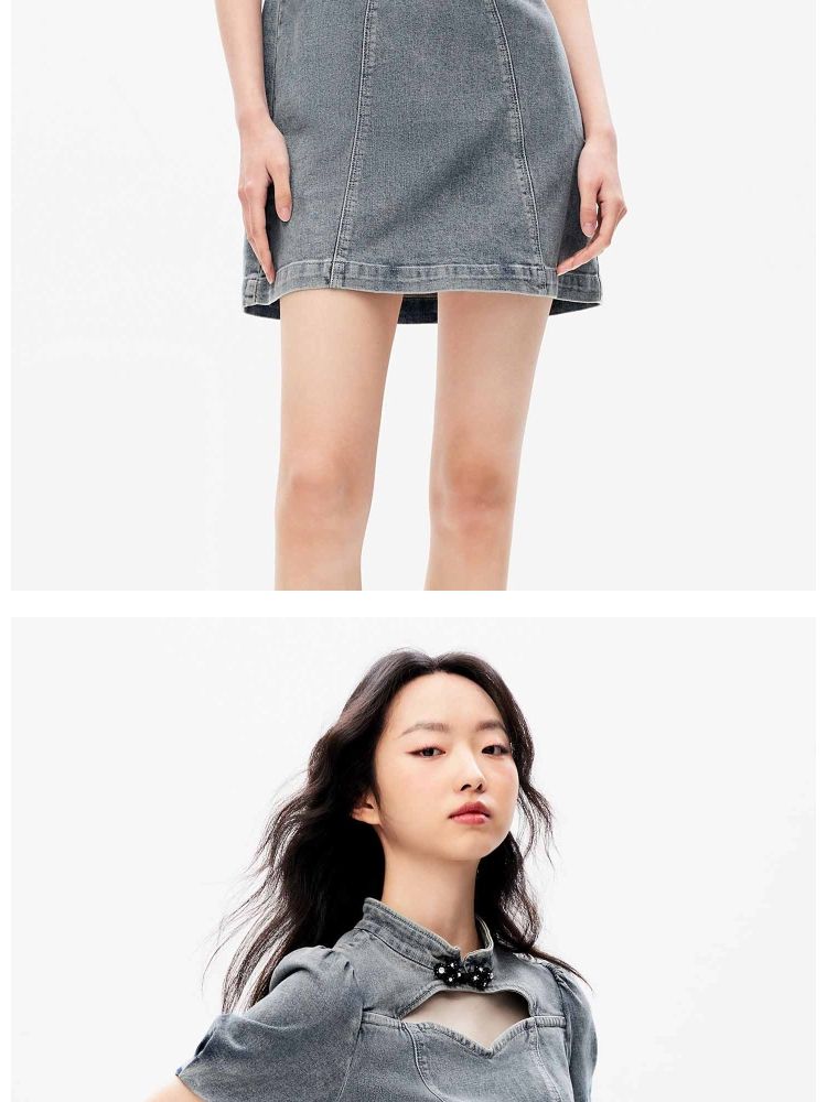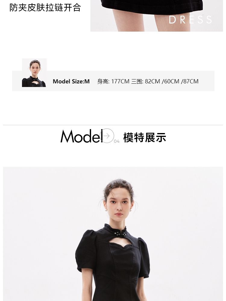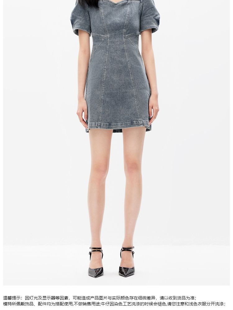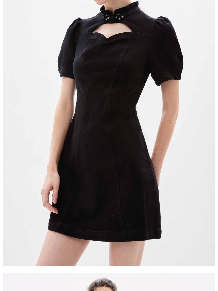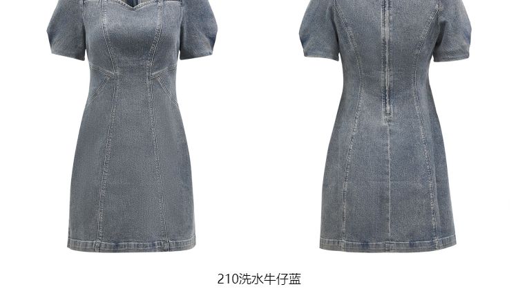 商品名称:【新中式】夏季时尚气质盘扣泡泡袖设计牛仔连衣裙女 032090