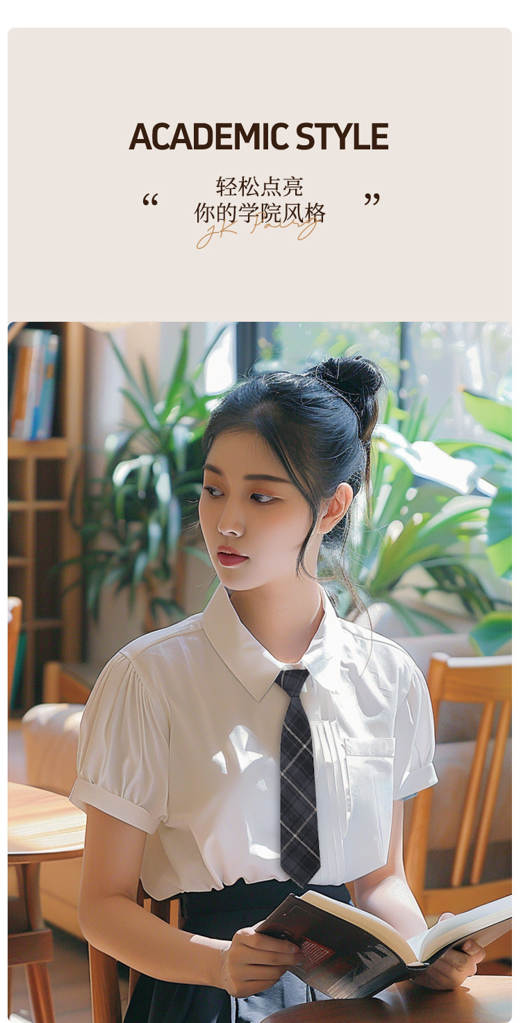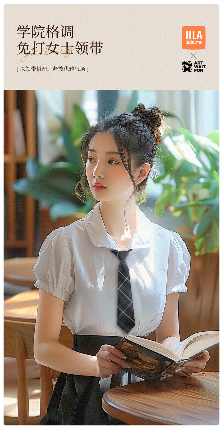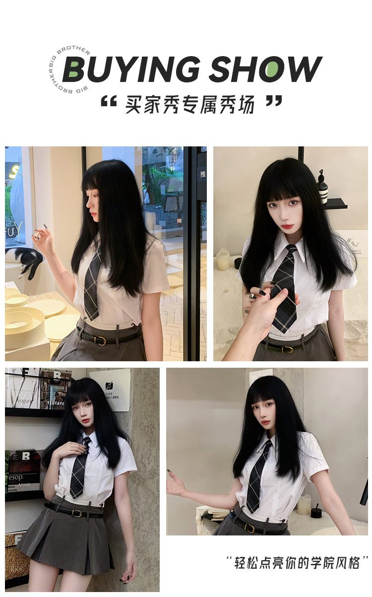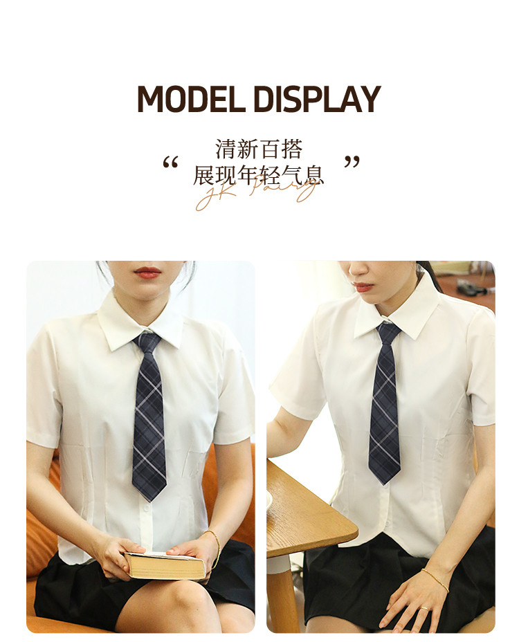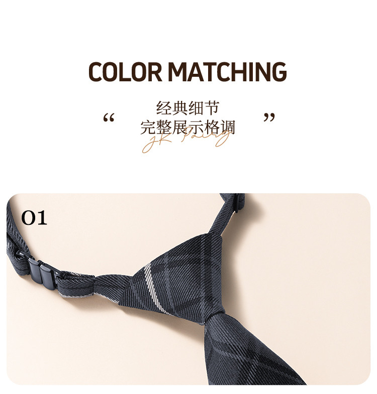 商品名称:女士领带2024款格子韩版休闲JK灰色卡扣款免打学院风潮 475158