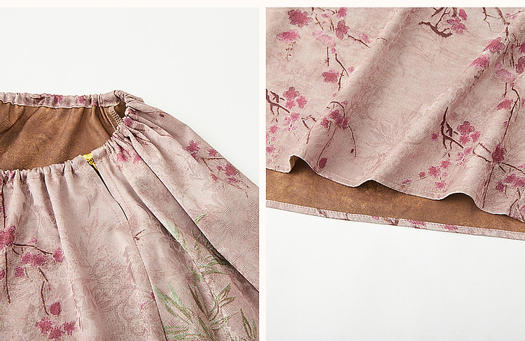 【烟暖初妆】春秋国风新中式缎面印花衬衫蕙兰粉气质抽褶衬衣 570305