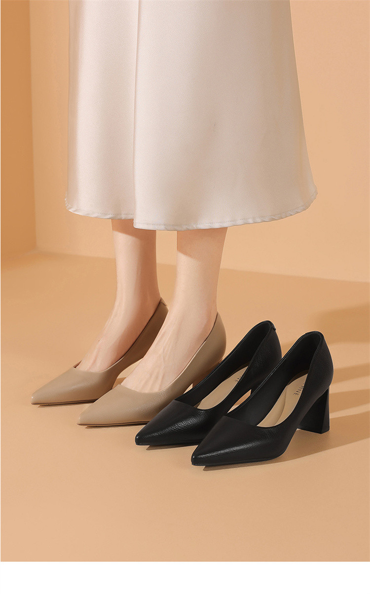 商品名称:春夏气质高跟鞋女一脚蹬百搭职场通勤鞋粗跟浅口时尚女单鞋时装鞋 993559