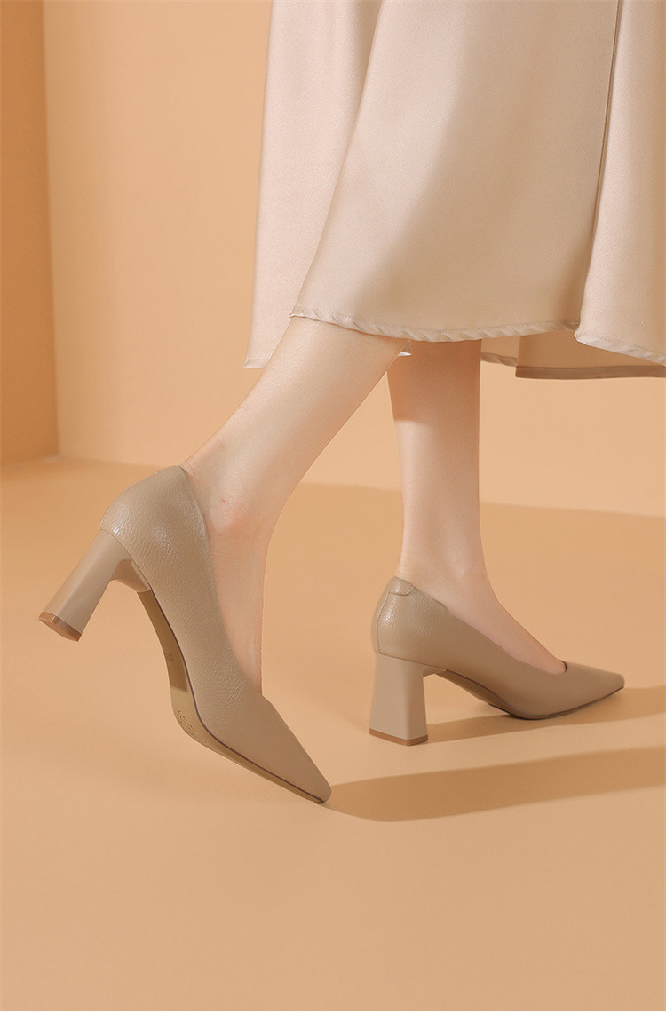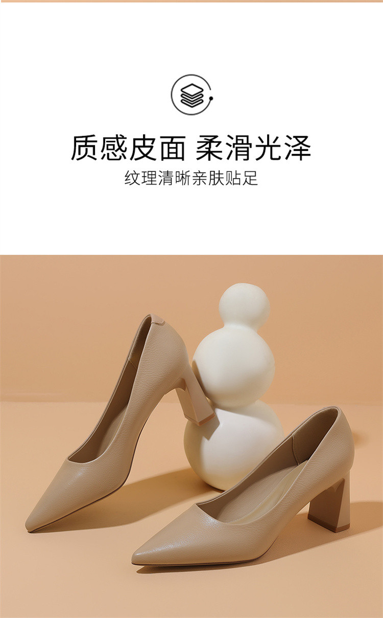 春夏气质高跟鞋女一脚蹬百搭职场通勤鞋粗跟浅口时尚女单鞋时装鞋 993559