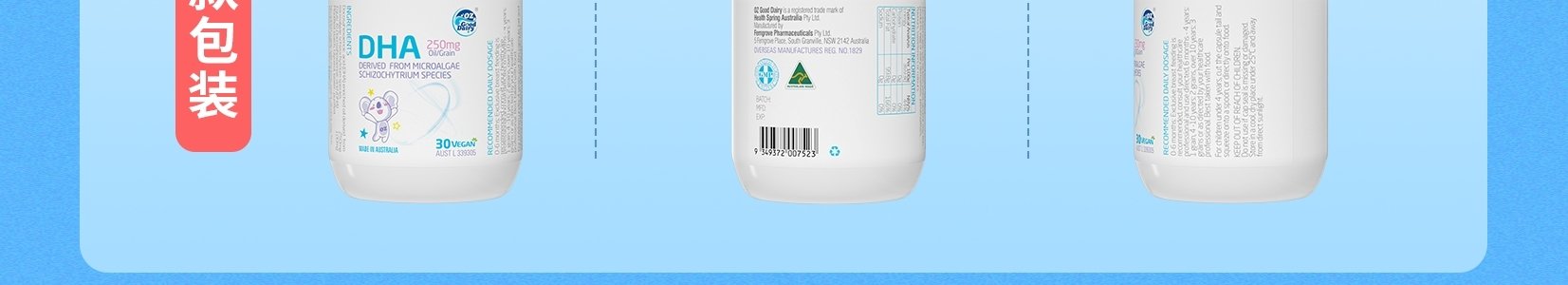 商品名称:澳洲 澳乐乳(Oz Good Diary)儿童DHA藻油胶囊 30粒 新老包装随机发
