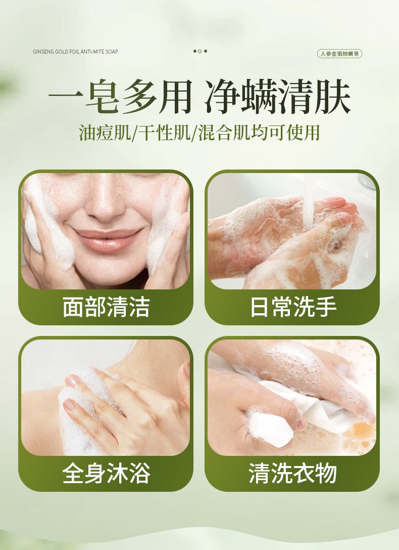 商品名称:梵西人参金箔除螨皂控油清洁洗脸收缩毛孔手工全身除螨神器男女
