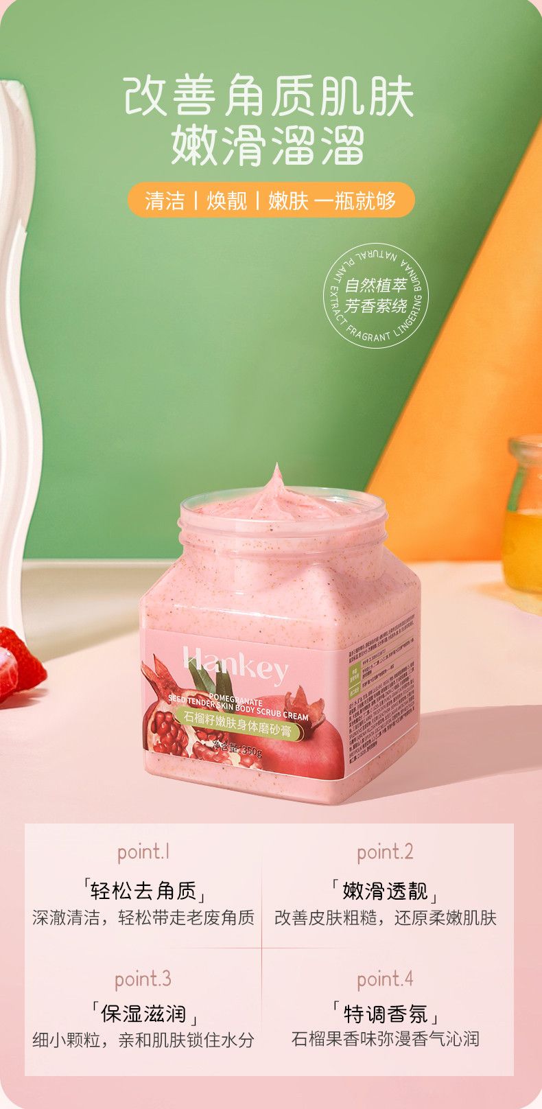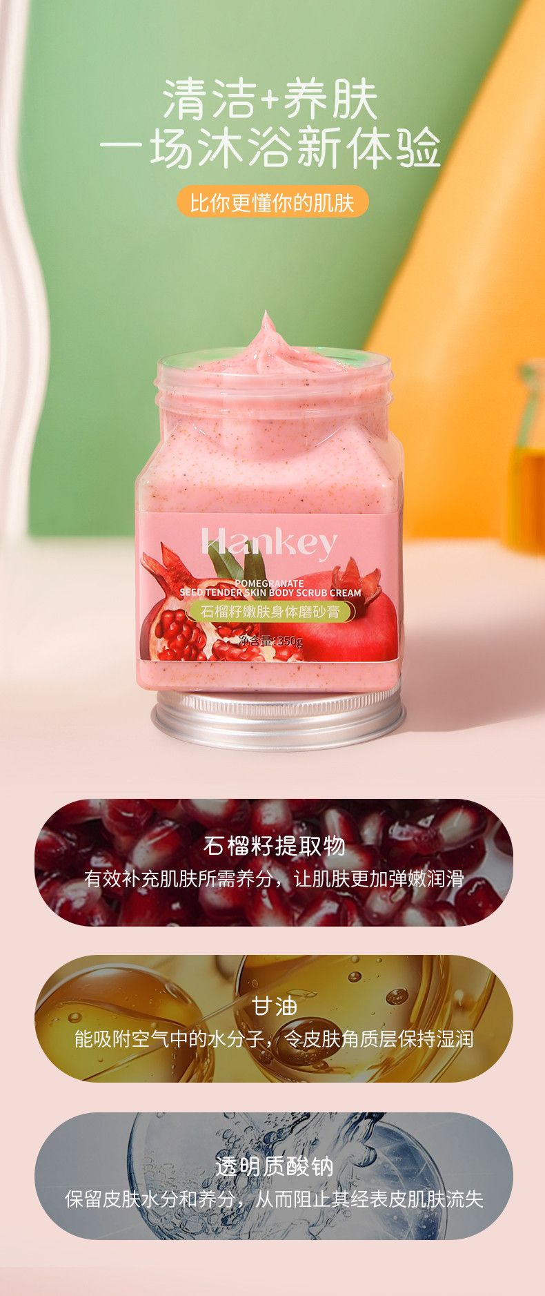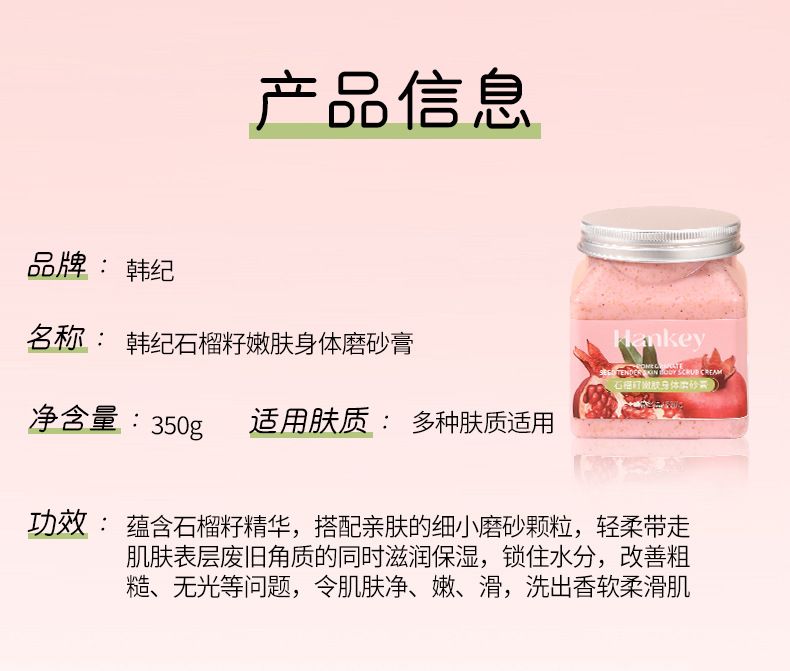 商品名称:Hankey/韩纪 石榴籽嫩肤身体磨砂膏350g 温和深度清洁身体