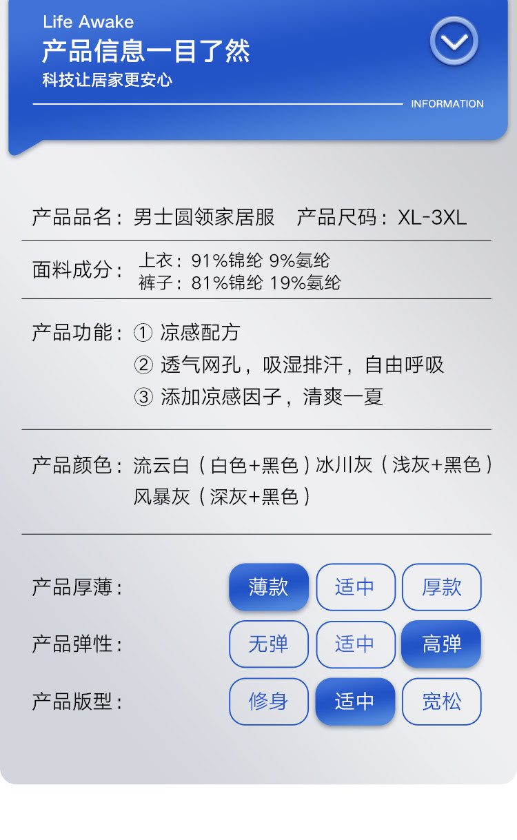 商品名称:【冰丝透气 吸湿排汗】春夏男士家居服男睡衣短袖长裤套装可外穿 850394