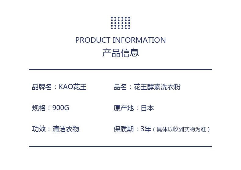 商品名称:日本花王酵素洗衣粉 绿色 900g
