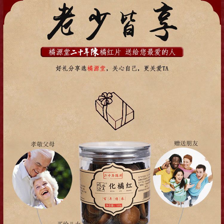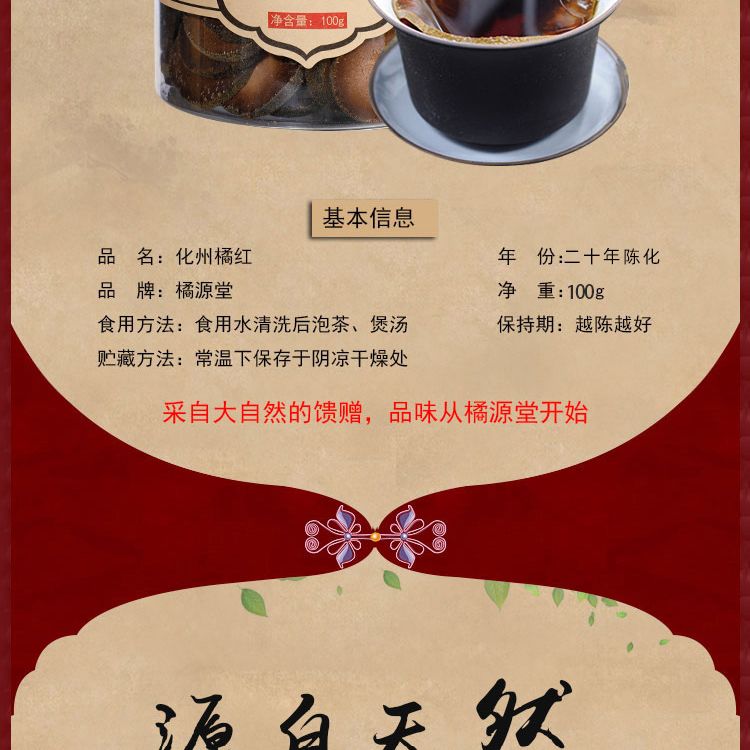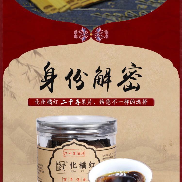 商品名称:橘源堂化州橘红二十年陈片100g/罐