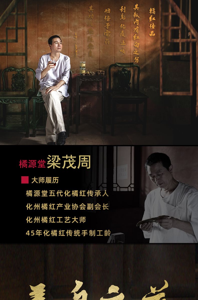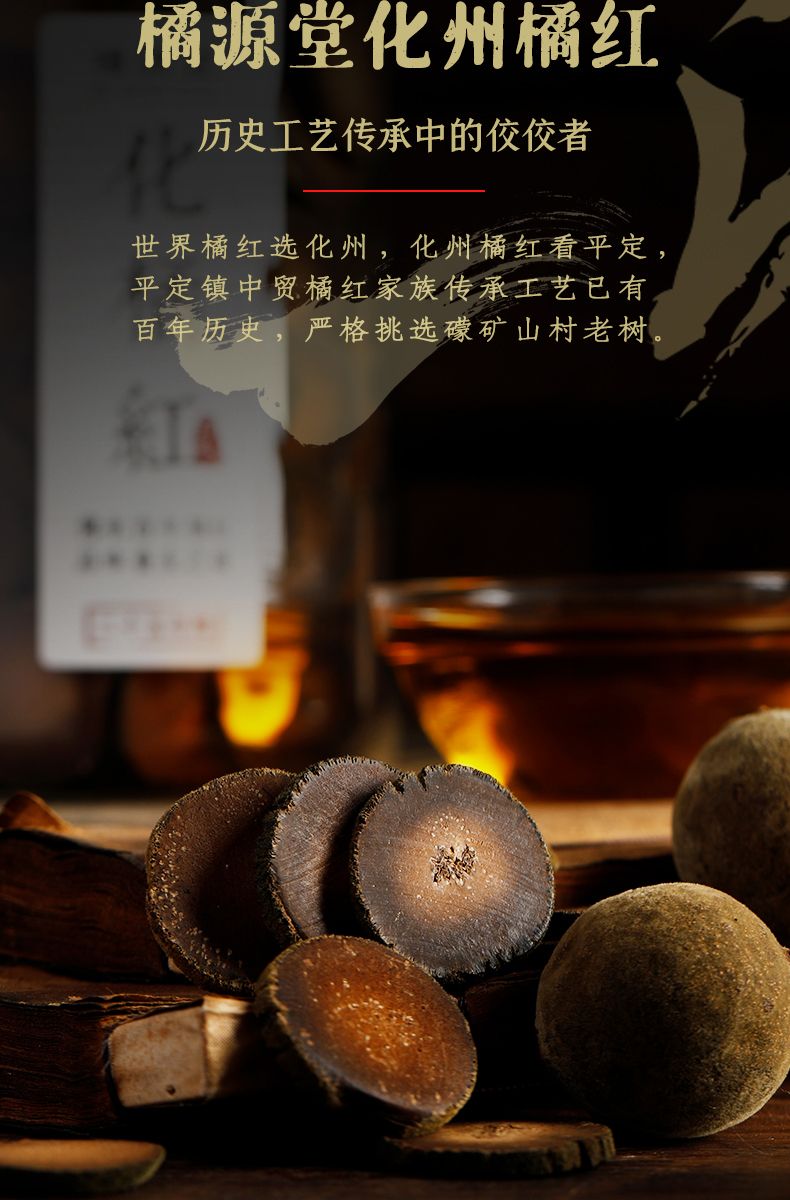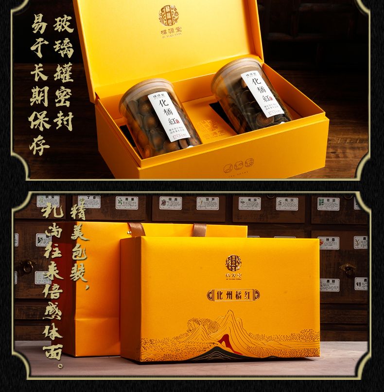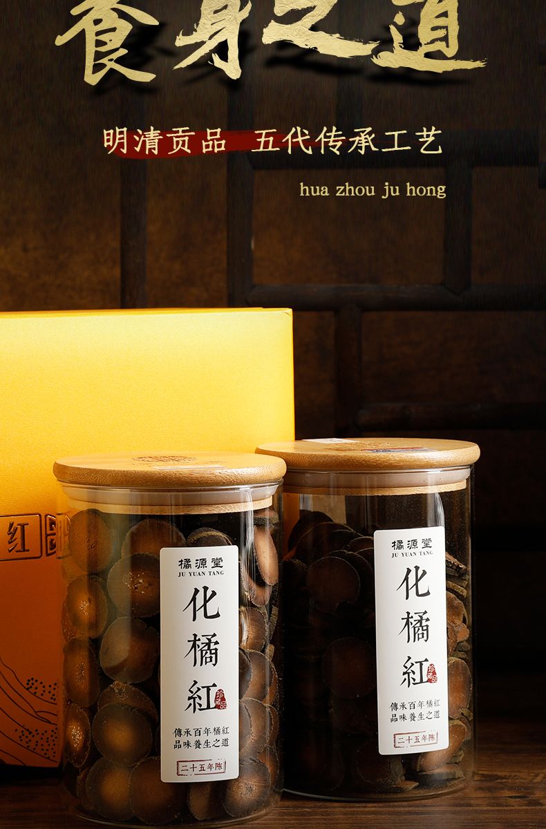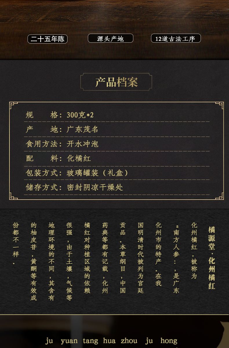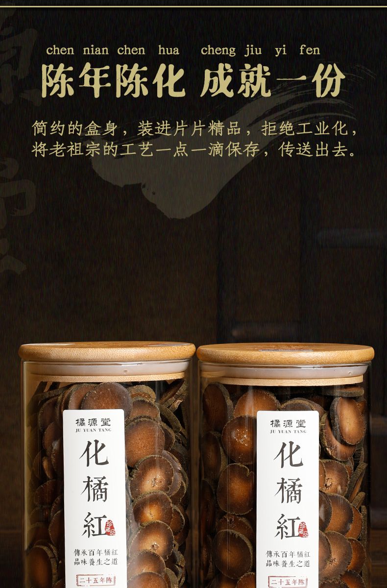 商品名称:橘源堂化橘红二十五年陈藏橘红片2罐x300克/盒