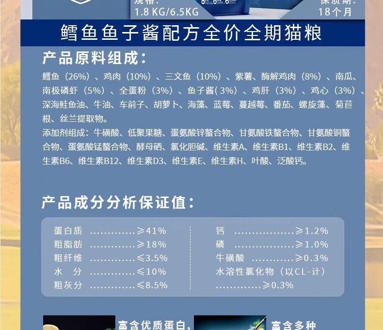 商品名称:帕缇朵鳕鱼鱼子酱配方全价全期猫粮1.8kg