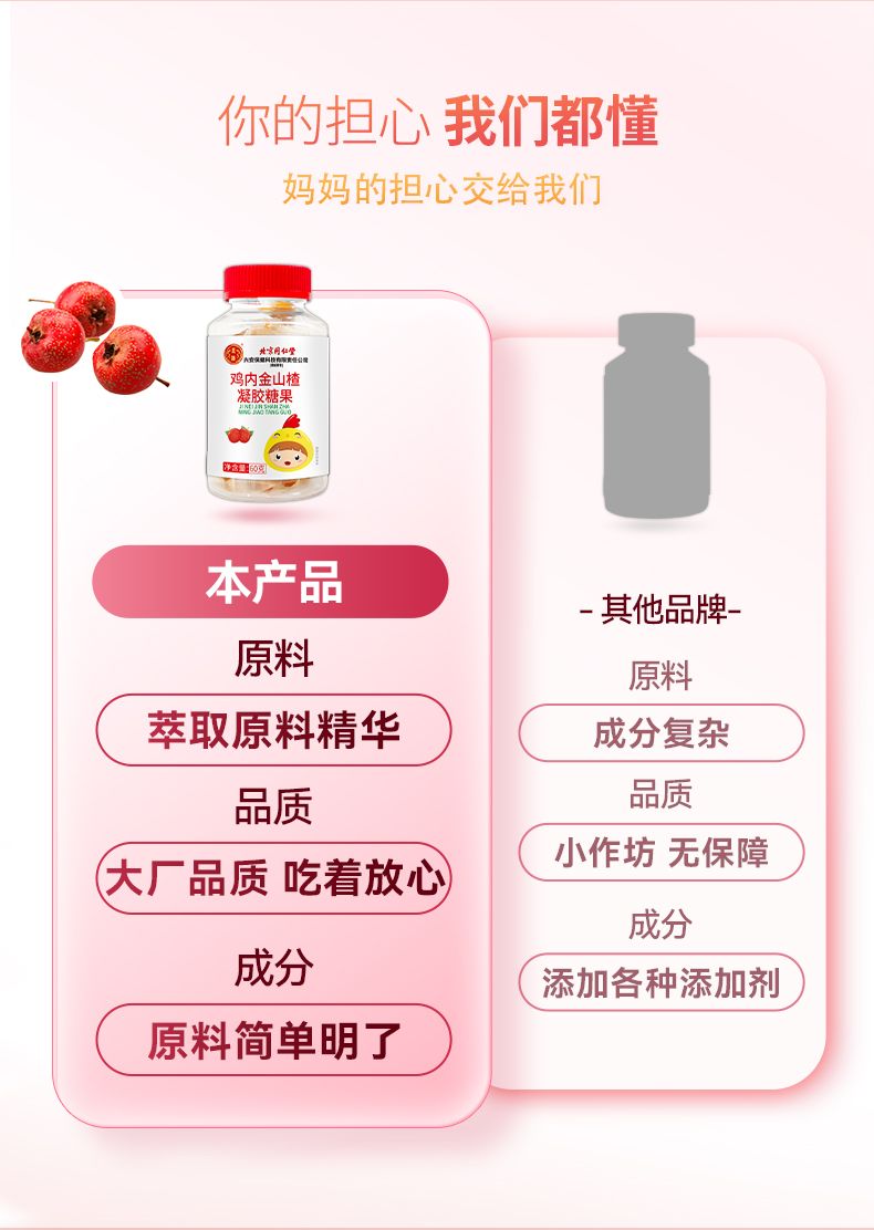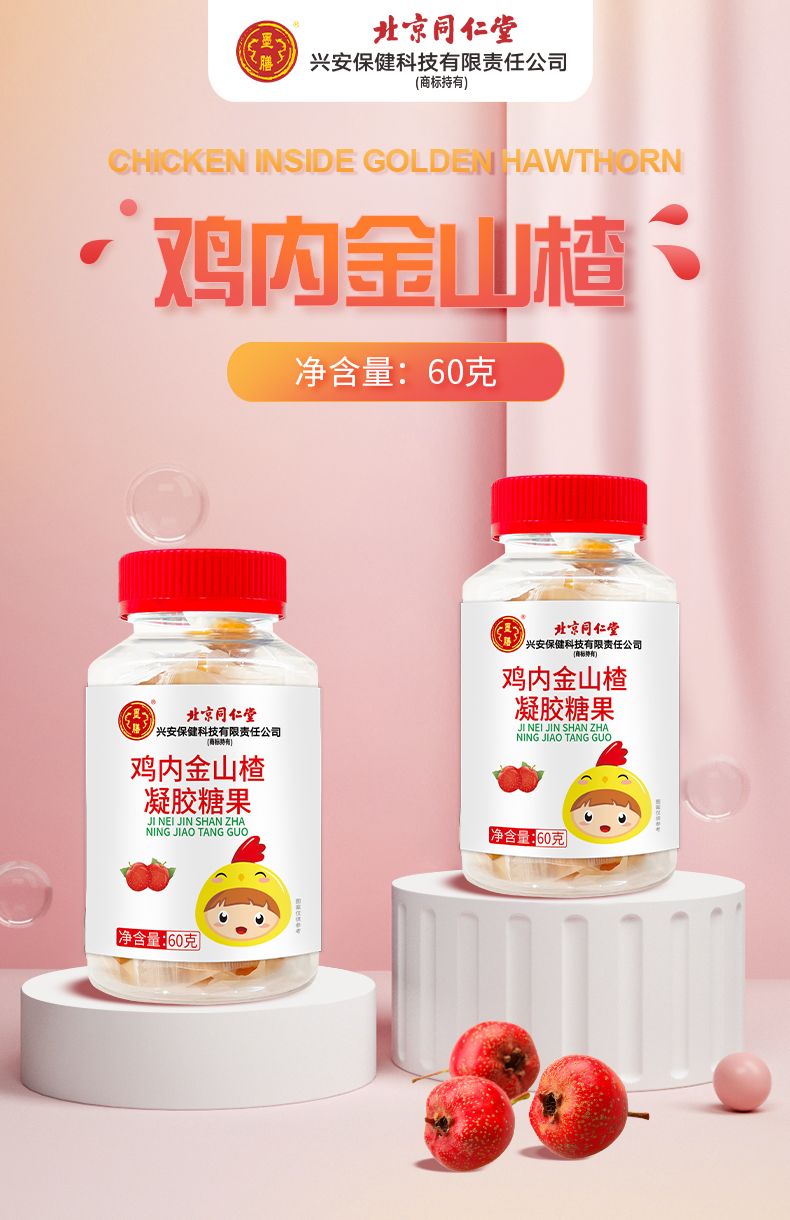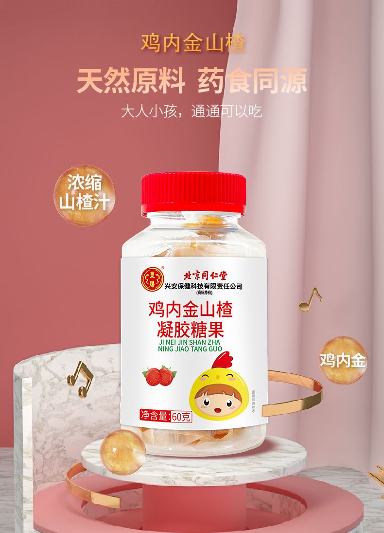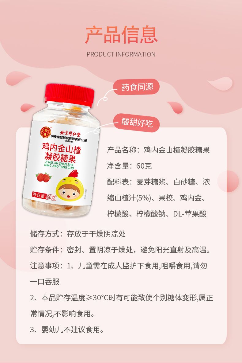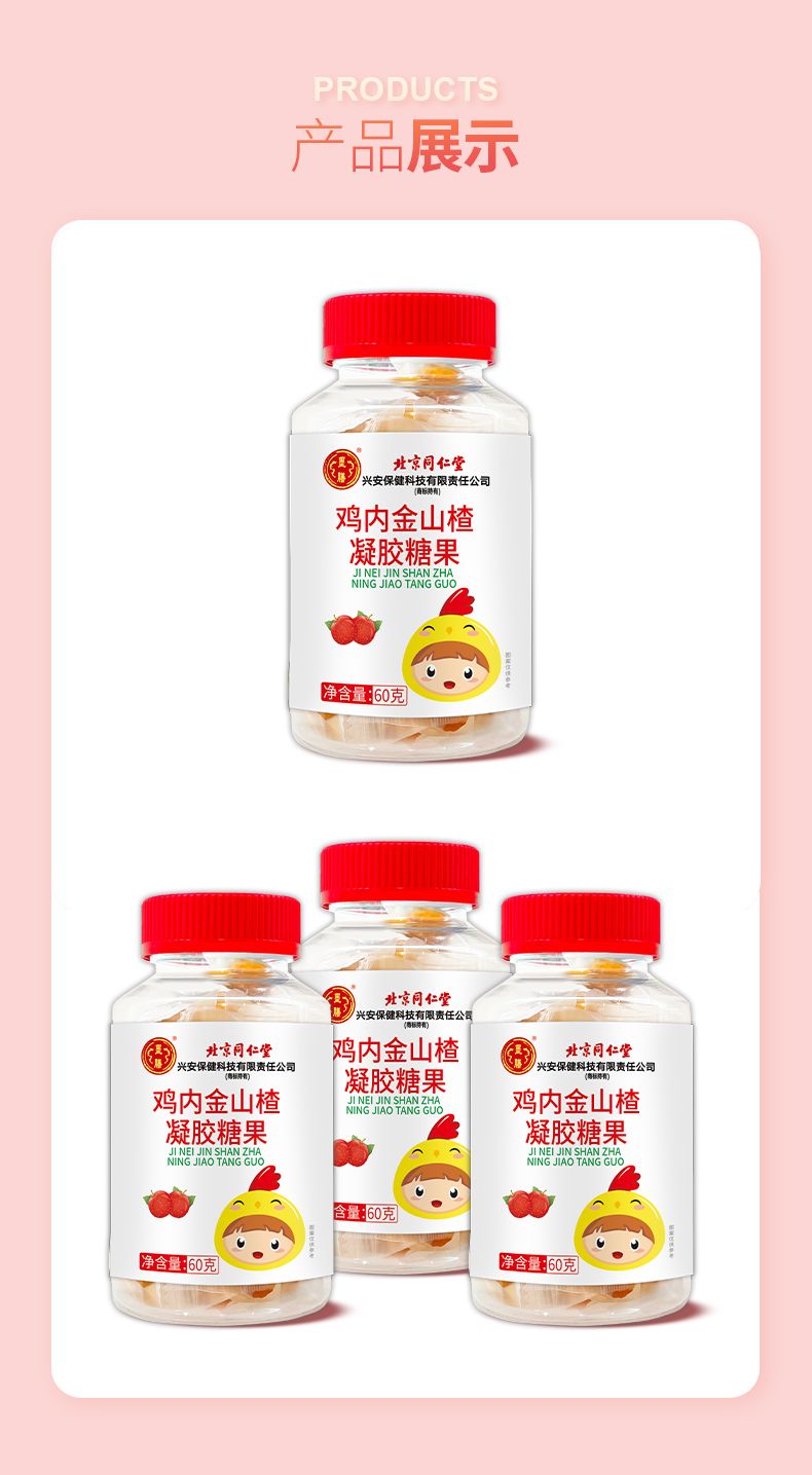商品名称:3瓶 北京同仁堂 山楂鸡内金软糖幼儿儿童宝宝吃饭脾胃不好适用